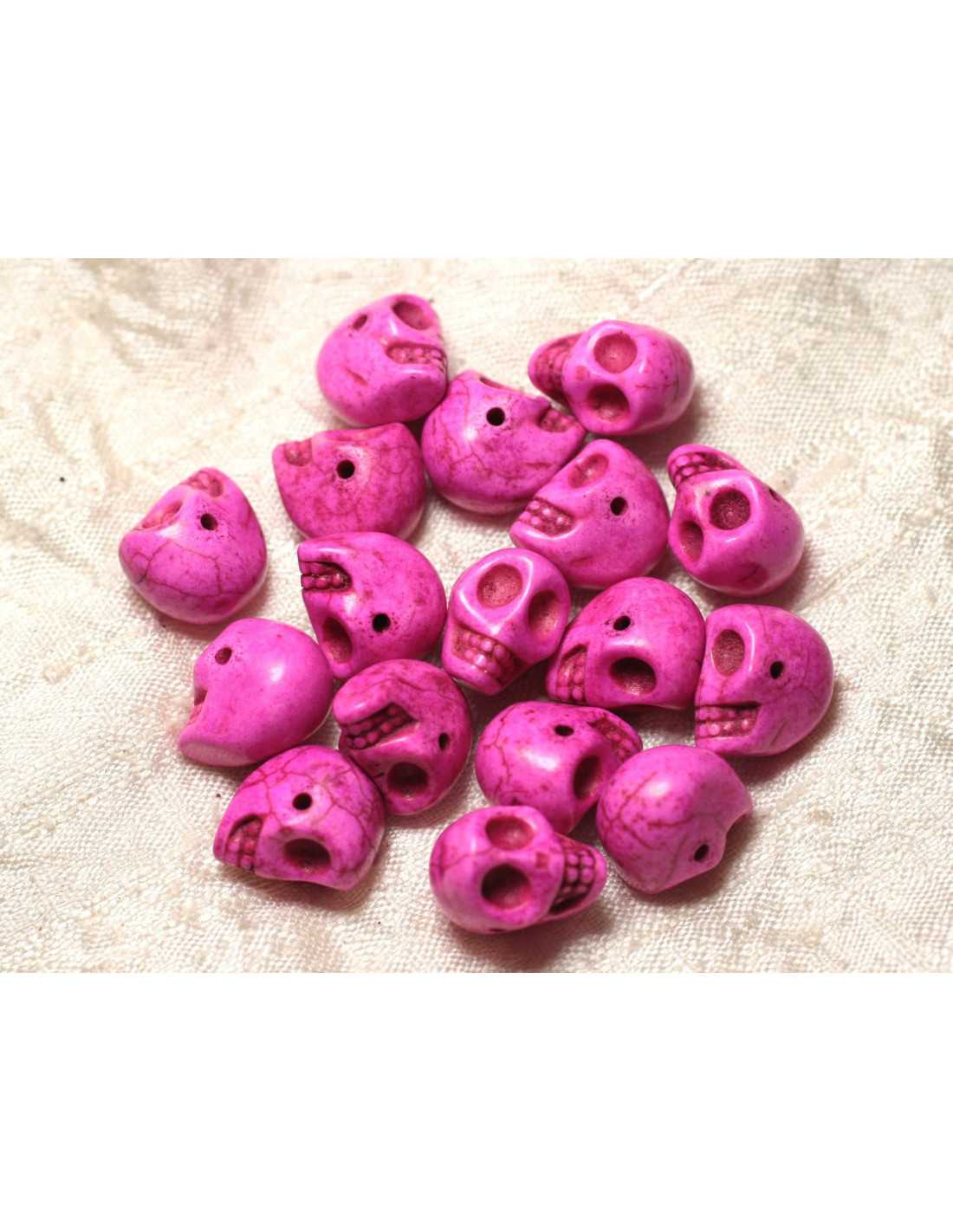Gewinde ca. 39cm 36pc - Synthetische türkisfarbene Steinperlen Schädel 14x10mm Neon Pink