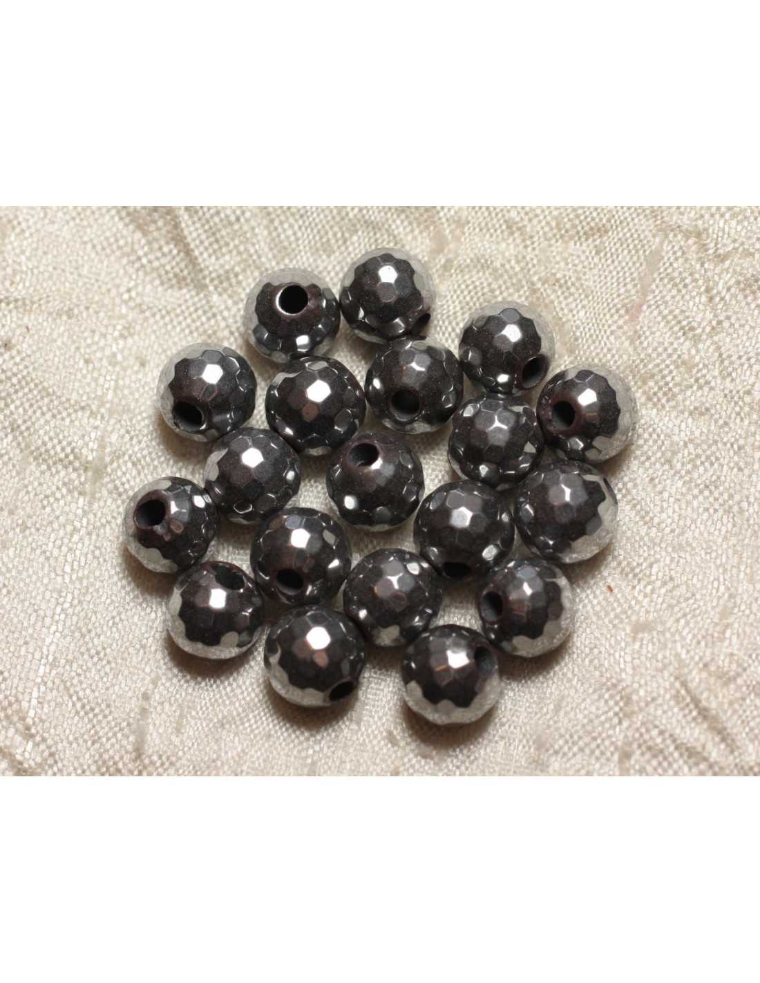 2 Stück - Steinperlenbohren 2,5 mm - Facettierter Rhodiumhämatit 10 mm