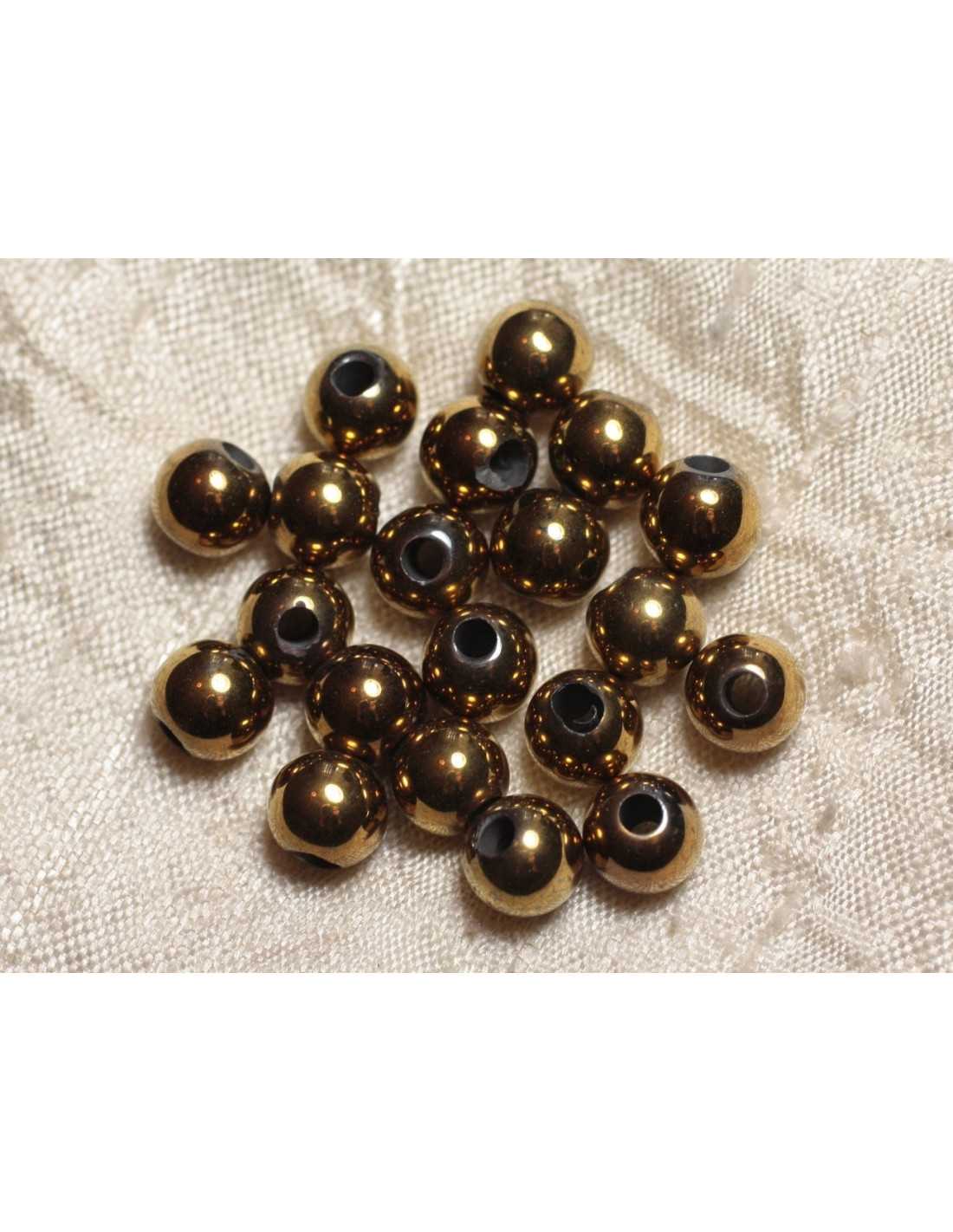 5 Stück - Steinperlenbohren 2,5 mm - Goldener Hämatit 8 mm