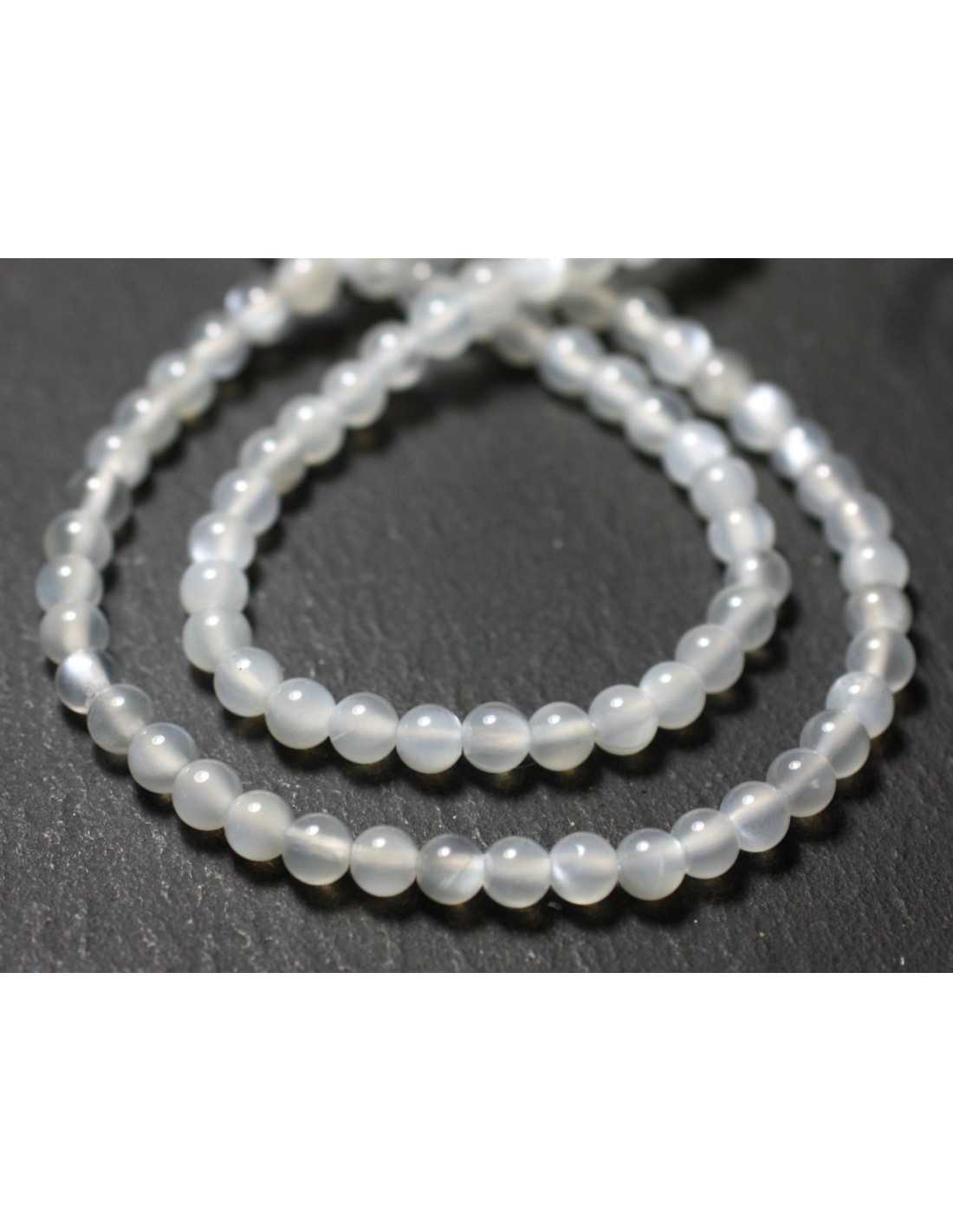 10 Stück - Steinperlen - Orientalische Mondsteinkugeln 3-4 mm schillerndes Grauweiß - 7427039727747