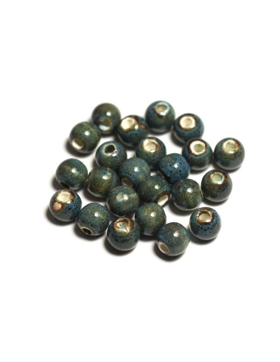 Keramik Porzellan Perlen 6mm Kugeln Farbe Blau Türkis Braun, meliert Kugelform, rund Abmessung ca. 6mm Bohrabmessung ca. 1,5mm Verkauft in Beuteln mit 100 Perlen Andere Größen und Farben sind in unserem Shop erhältlich!