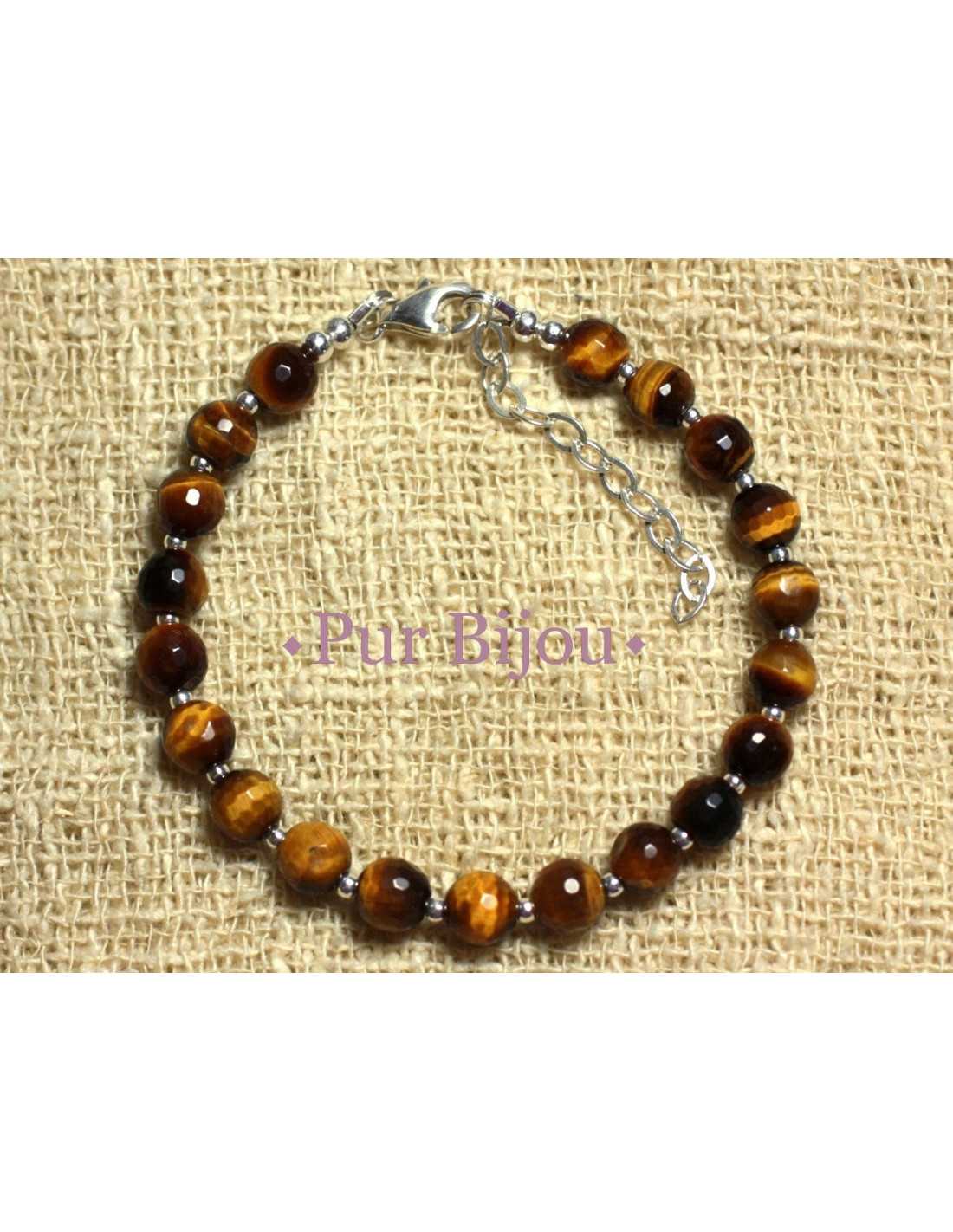 Armband Silber 925 und Stein - Tiger Eye Facettierte Kugeln 6mm