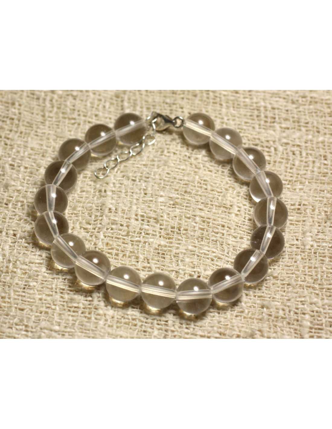 Armband Silber 925 und Steinperlen Bergkristallquarz 8mm