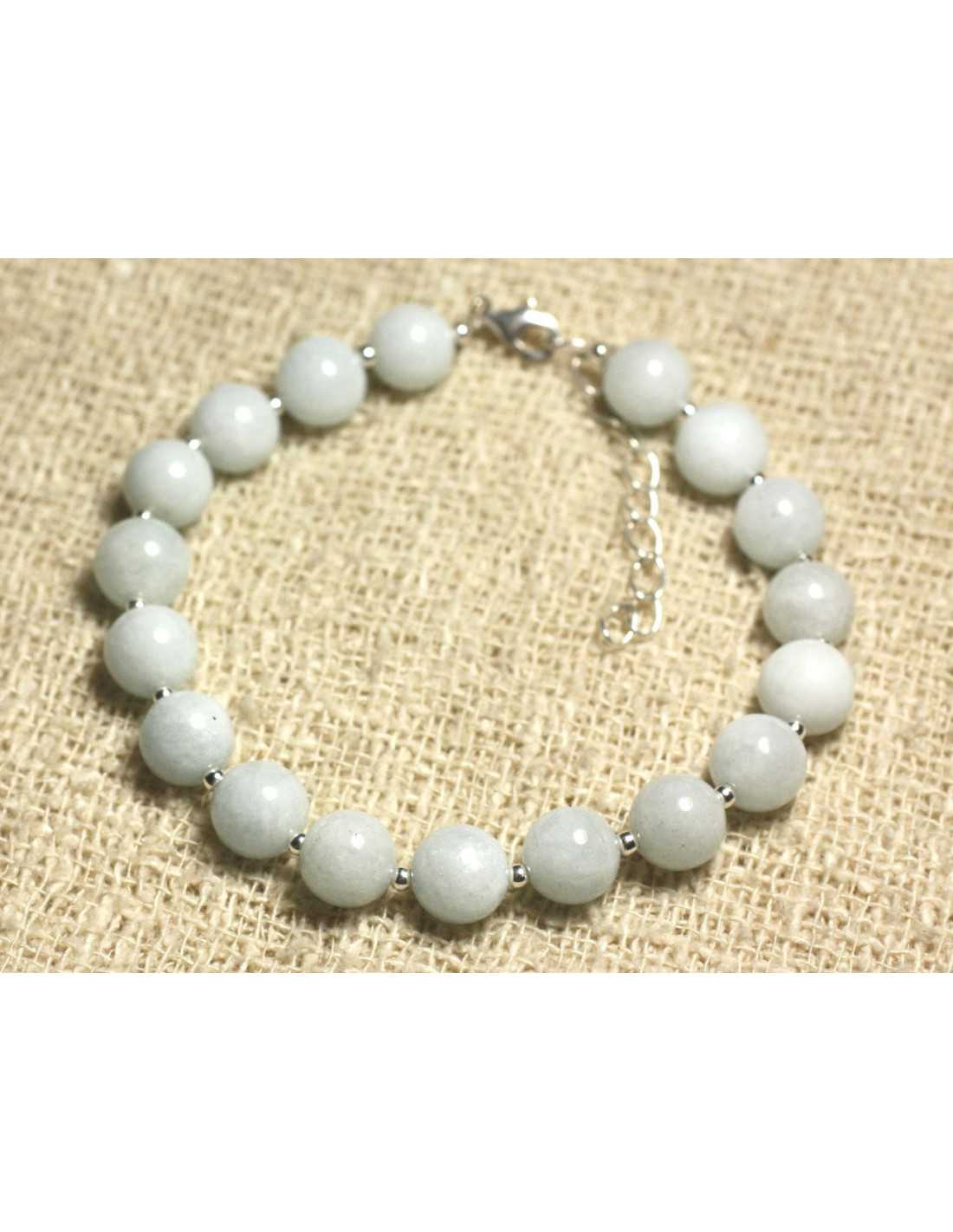 Armband 925 Silber und Halbedelstein Aquamarin Natürlicher Halbedelstein Farbe weiß, hellblau, transparent Runde Perlen ca. 8 mm Distanzperlen aus 925 Silber, runder 2 mm Hummerverschluss und Kette aus 925 Silber Länge mit Verschluss: 17 cm + 4 cm Silberkette