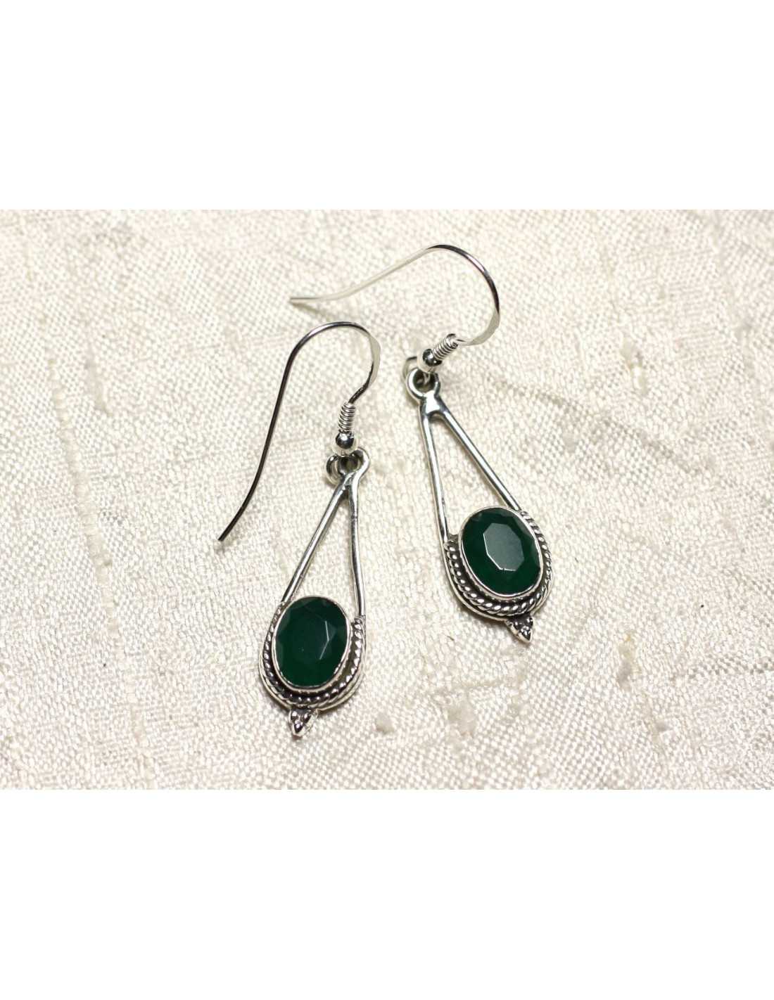 BO212 - Ohrringe Silver 925 und Emerald Stone Drops 30mm