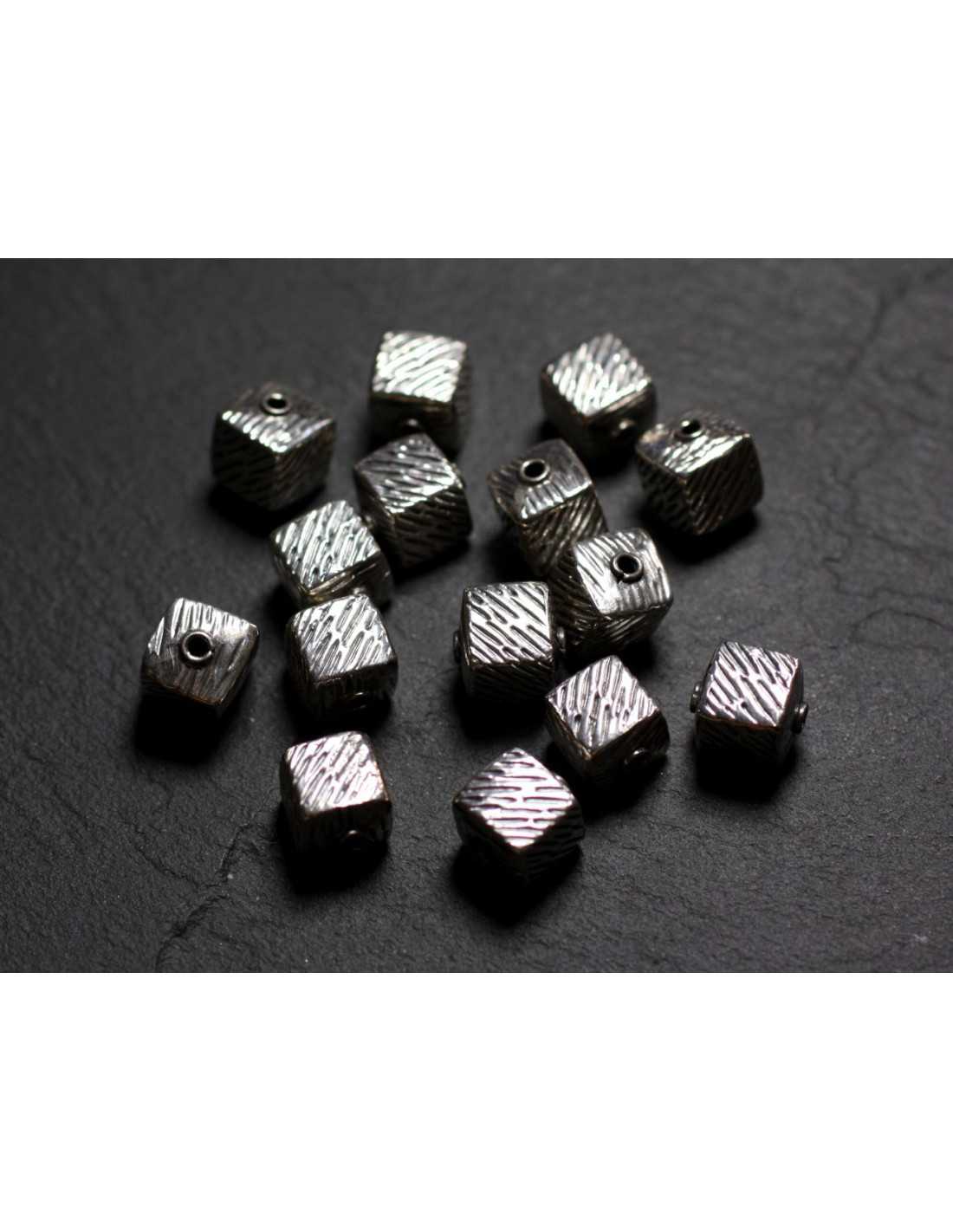 1pc - 925 Sterling Silber Perle Zebra Würfel 9mm
