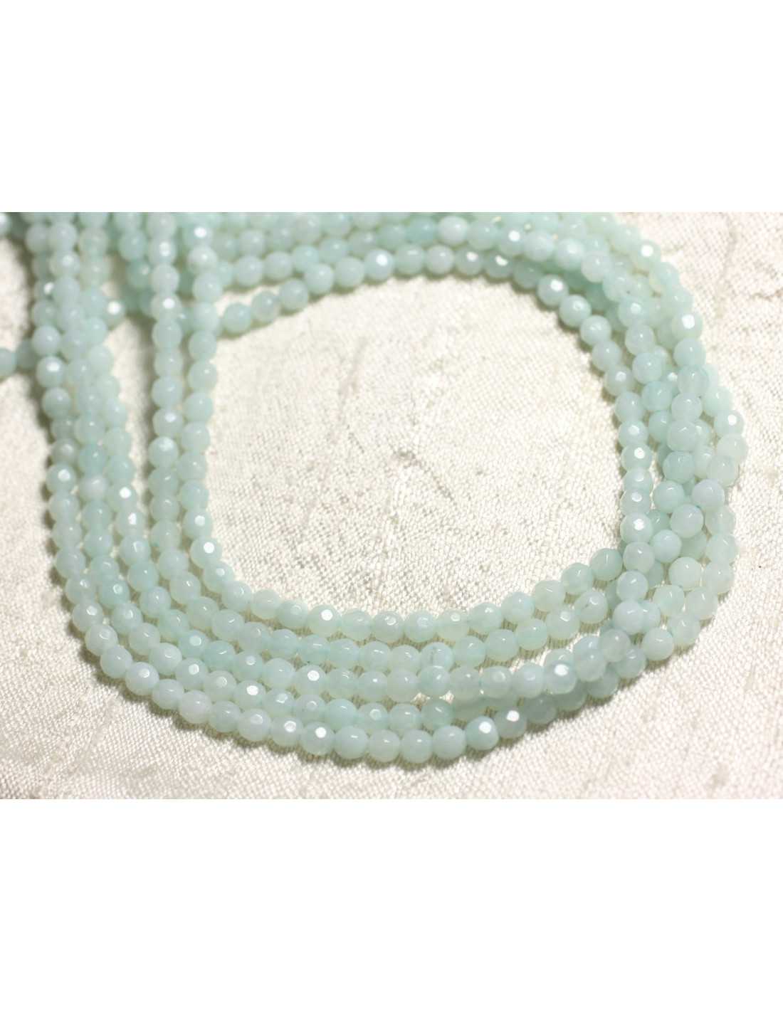 Gewinde 39 cm - Amazonitsteinperlen Naturfarbener Halbedelstein Farbe hellblau grün, türkis Form Facettierte Kugeln Abmessungen ca. 4 mm Bohrabmessung ca. 0,8 mm Verkauft mit einem Gewinde von 39 cm Ca. 94 Perlen pro Faden