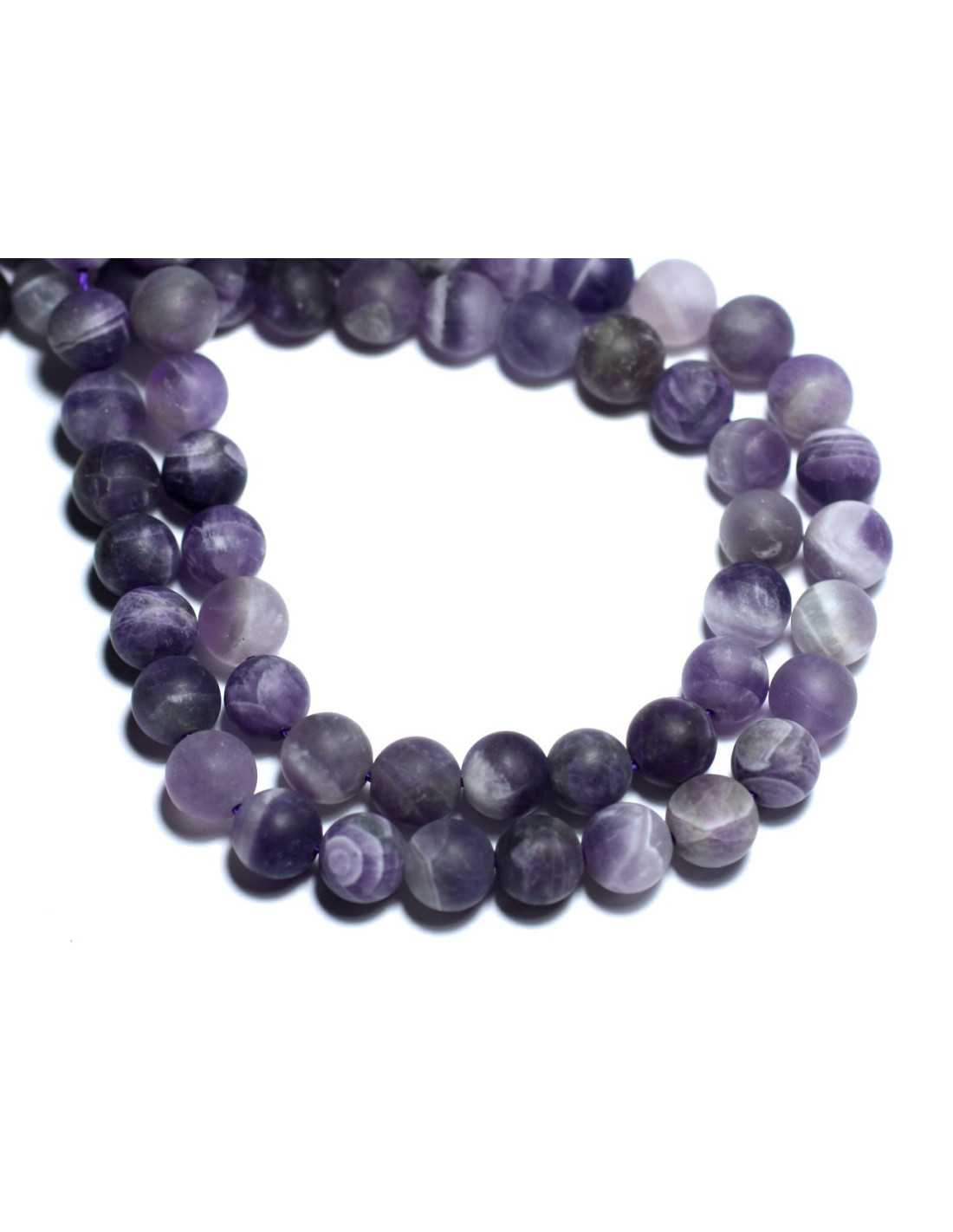 Gewinde 39 cm - Amethyst Chevron Steinperlen Natürlicher Halbedelstein Farbe weiß, lila, lila, transparent Matt matt, sandgestrahlt Kugel, runde Form Abmessungen ca. 6 mm Bohrabmessung ca. 1 mm Verkauft mit 39 cm Draht Ca. 71 Perlen pro Draht