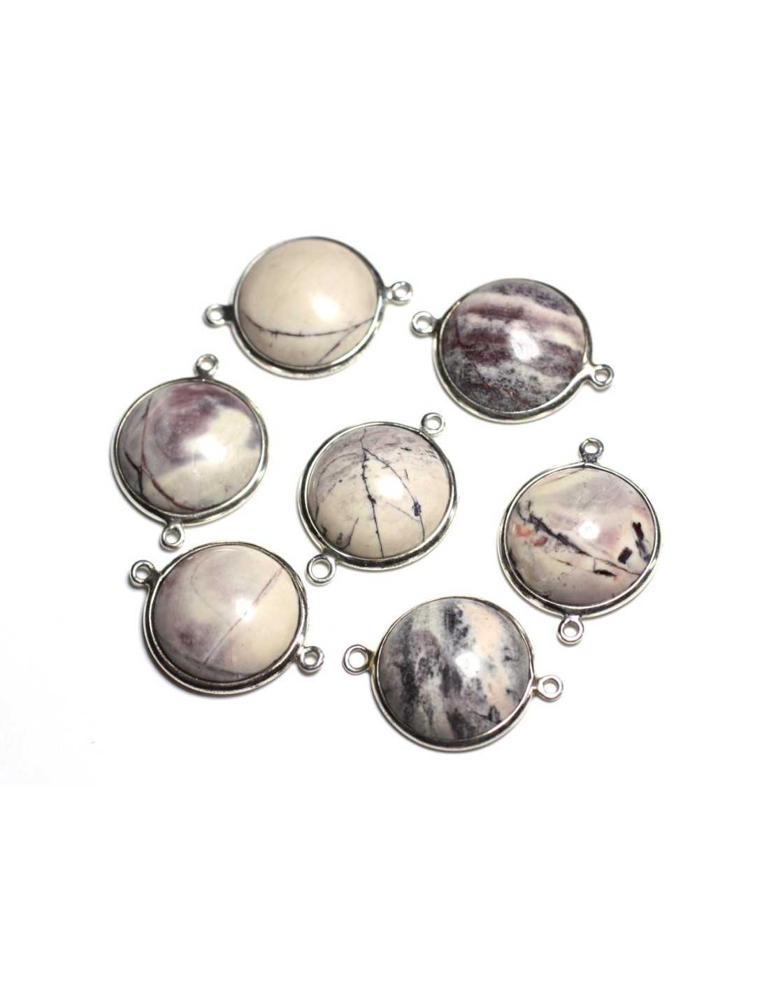 1Stk - Silber 925 und Steinverbinder - Jaspisporzellan rund 20mm - 4558550082411