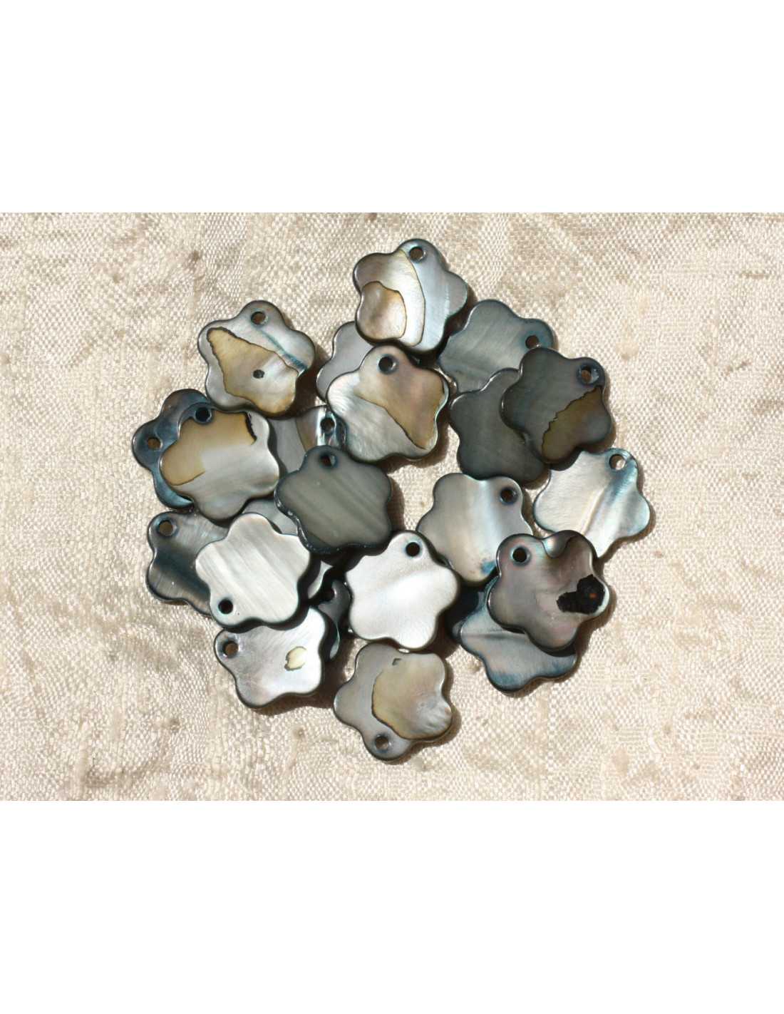 10pc - Pearl Charms Anhänger Perlmutt Blumen 15mm Grau Schwarz