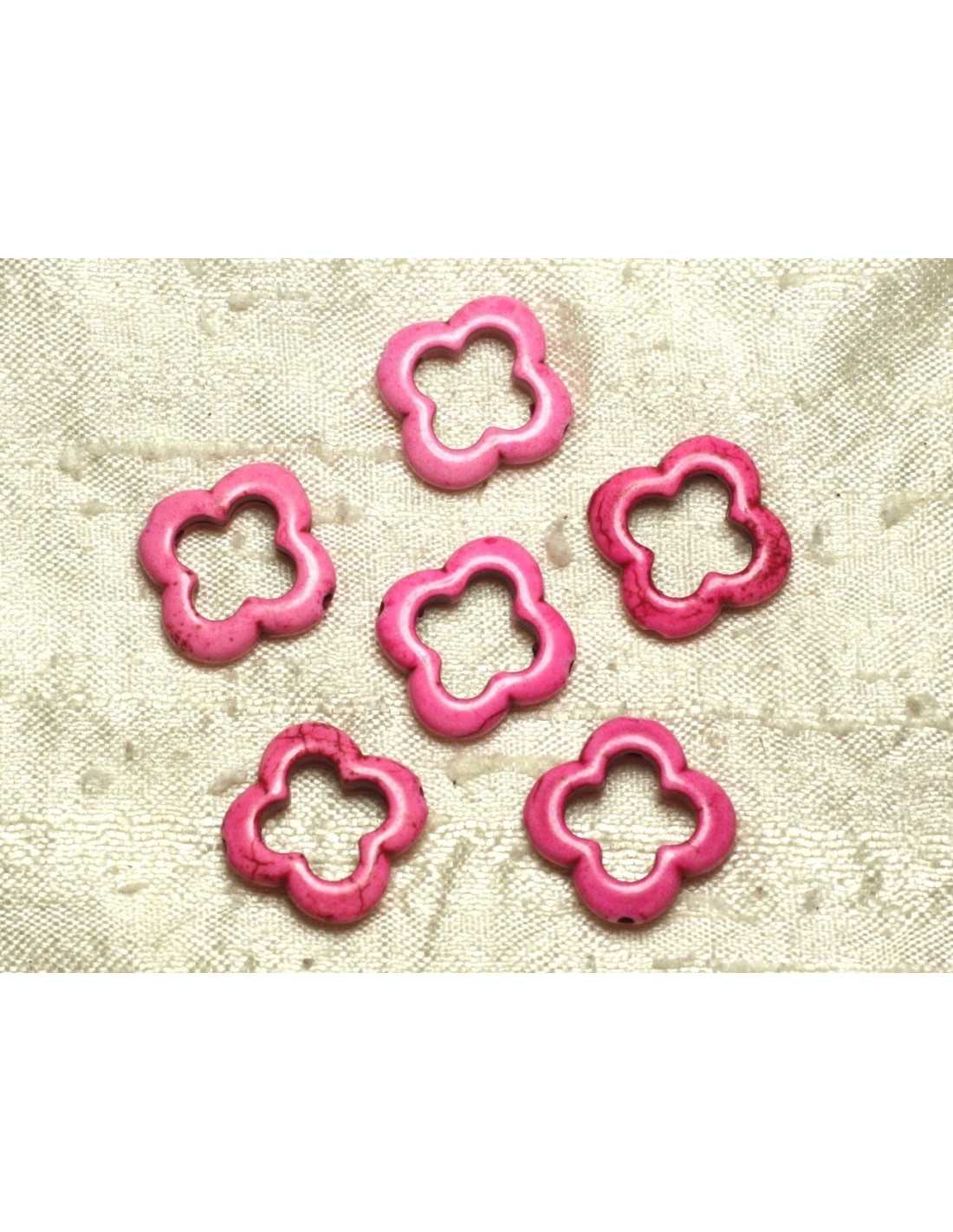 10 Stück - Perlen Türkis Stein Synthese Trefle Blume 4 Blätter 20mm Fluoreszierendes Rosa - 4558550036322