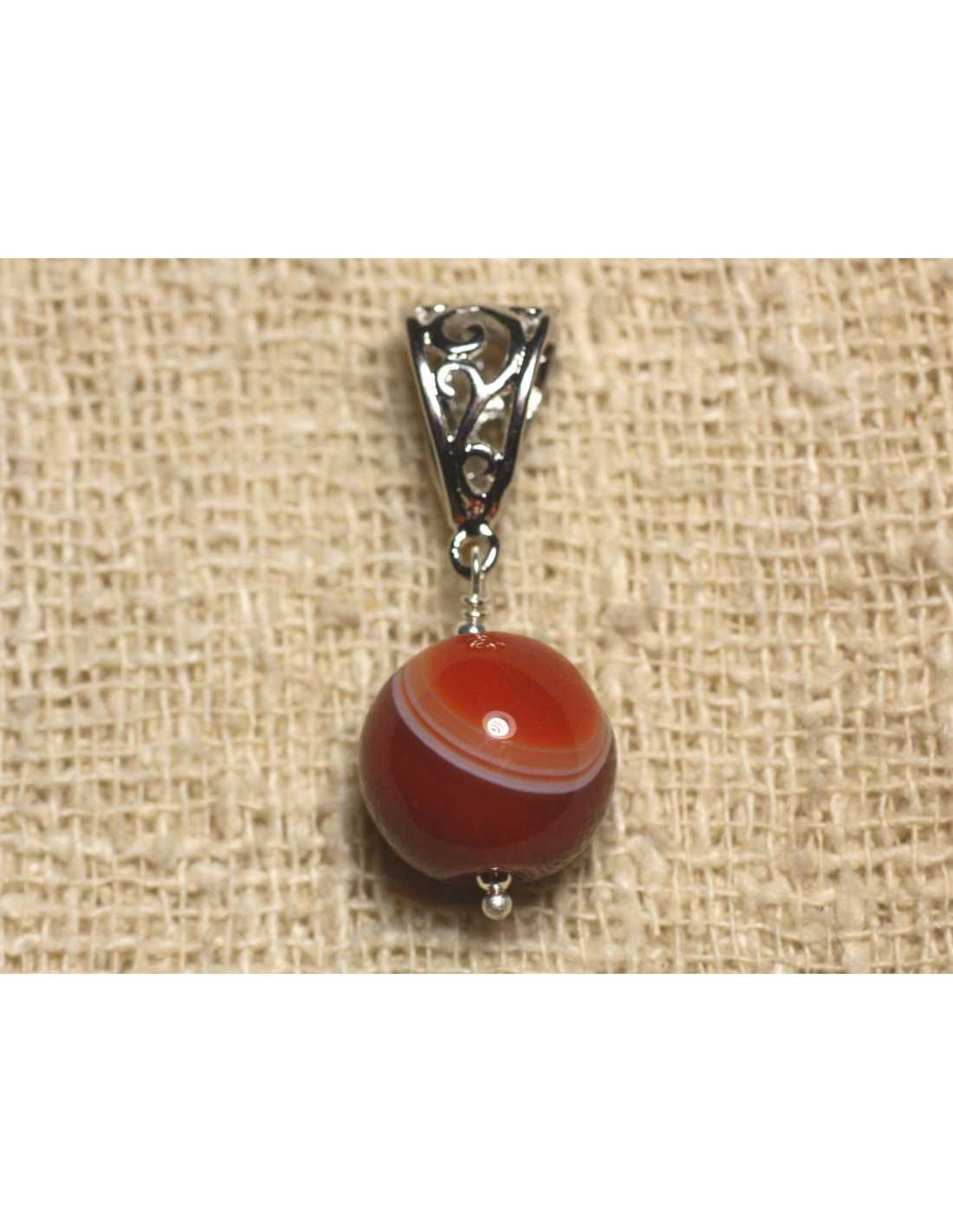 Halbedelsteinanhänger Roter Achat Natürlich getönter Halbedelstein Farbe rot, weiß, transparent Runde Perle Abmessung 14 mm filigrane Perle in rhodinierter Qualität Silber Metall Abmessungen 11 x 6 mm Anhänger verkauft mit einer Halskette aus Organza oder gewachster Baumwolle Personalisierung möglich mit Steinen und Farben Ihrer Wahl