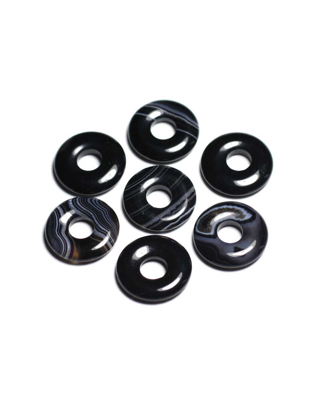 Schwarz-Weiß-Achatstein-Anhänger-Halskette Getönter natürlicher Halbedelstein Farbe Weiß, Schwarz Donutform Abmessungen Durchmesser 20 mm x Dicke ca. 5 mm Innenmaß 7 mm Gewachste Baumwollschnur Farbe Ihrer Wahl Einstellbare Größe dank eines praktischen und soliden Schiebeverschlusses Die Farben und Muster kann je nach Stein variieren