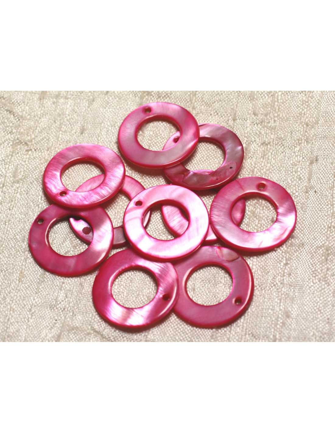 10Stk - Perlen Charms Anhänger Perlmutt Donuts Kreise 25mm rot rosa himbeere fuchsia - 4558550000590
