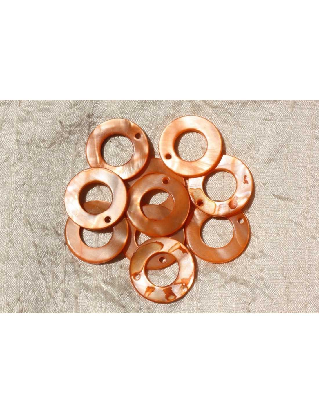 10Stk - Perlen Charms Anhänger Perlmutt Donuts Kreise 25mm orange Mandarine Kapuzinerkresse - 4558550019103
