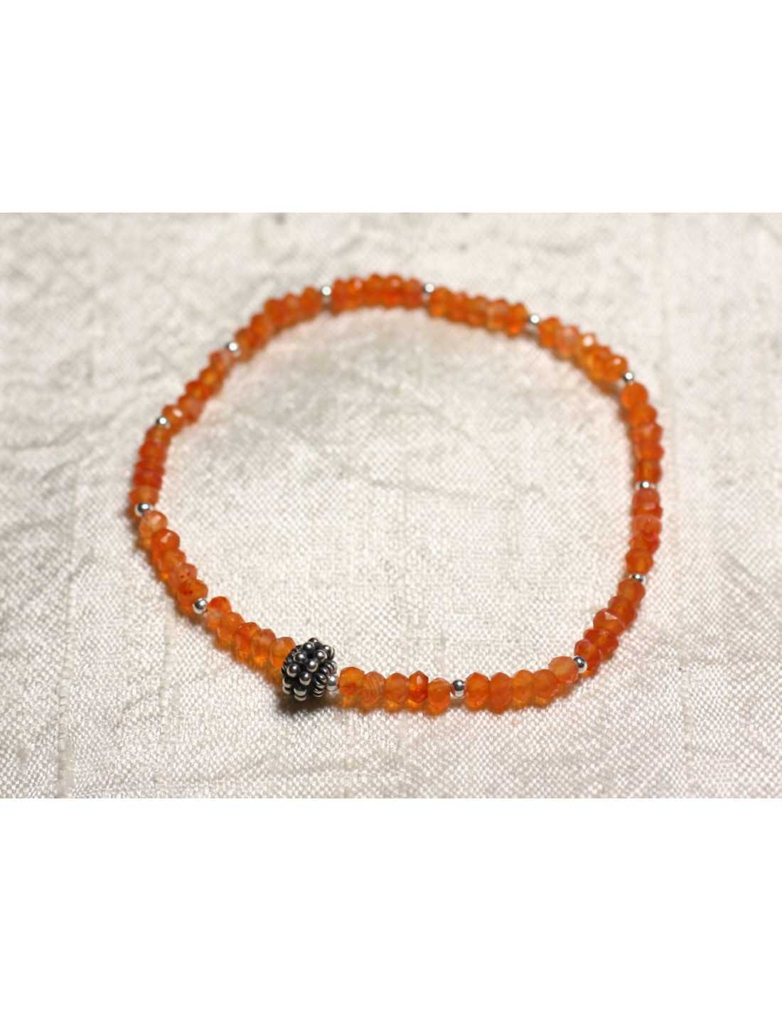 Armband 925 Silber und Karneol Stein facettierte Unterlegscheiben 3 mm Natur-Halbedelstein Farbe orange, transparent Facettierte Rondelle Perlen 3x2 mm Runde 925 Silber Perlen 2 mm 925 Silber Zentralperle, 7 mm runde Perle oder andere 925 Silber Perle Ihrer Wahl Verschluss und Kette in 925 Silber Länge 17 cm + 4 cm 925er Silberverlängerungskette Hergestellt aus starkem und widerstandsfähigem Fluorkohlenstoffdraht