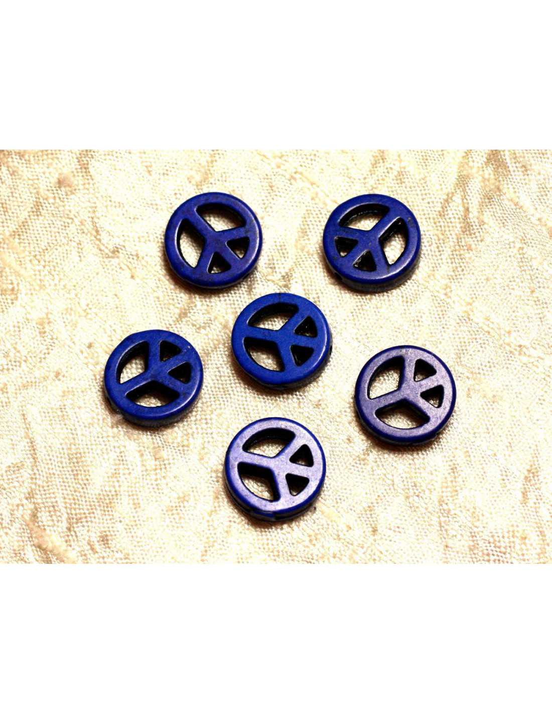 Gewinde 39 cm - Türkisfarbene Steinperlen Rekonstituierter Frieden und Liebe 15 mm Kunststein Farbe Mitternachtsblau Friedens- und Liebesform von oben nach unten gebohrt Abmessungen Durchmesser 15 mm x Dicke 3-4 mm ca. Bohrabmessung ca. 1 mm Ca. Faden