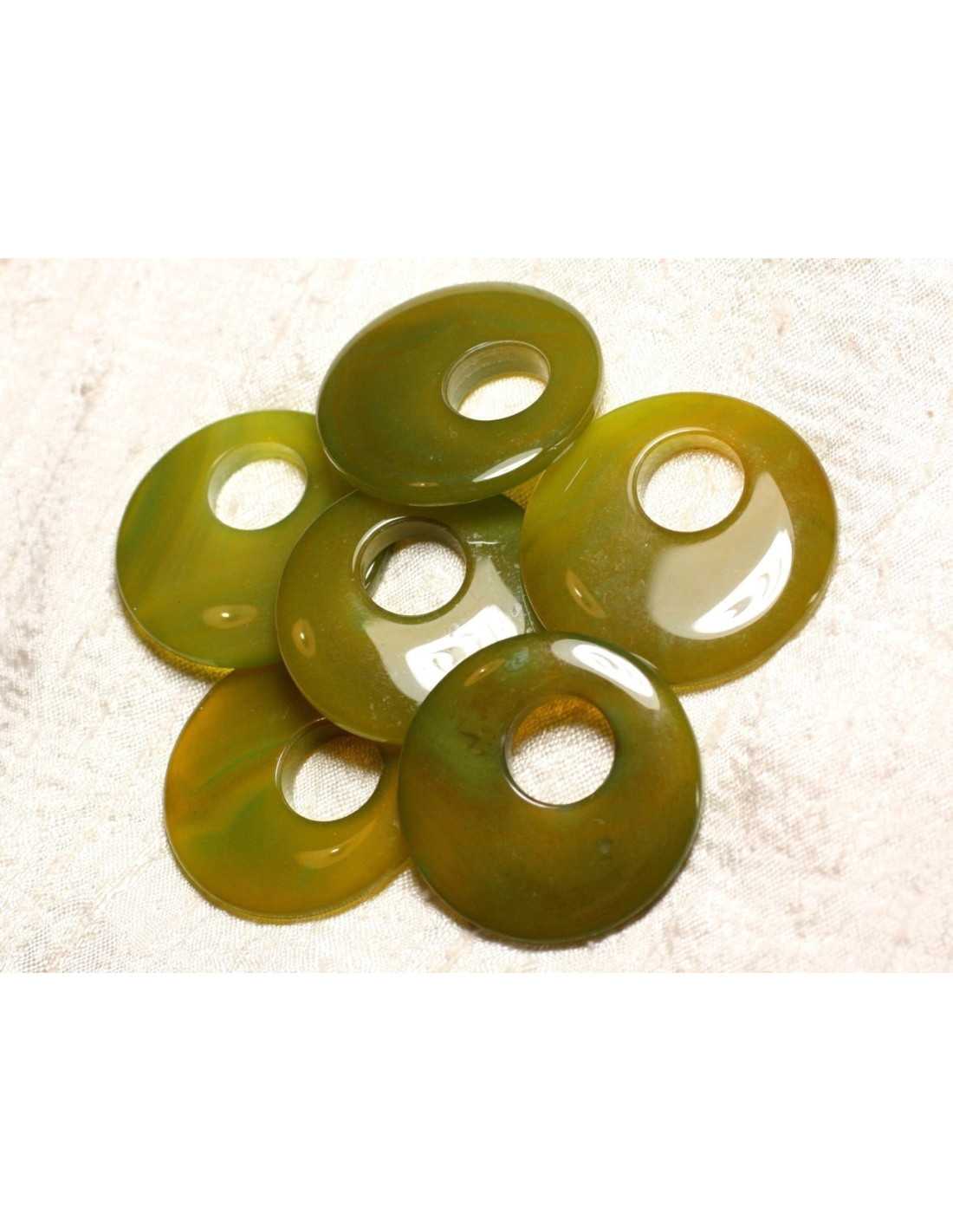 1pc - Donut Anhänger Stein Achat 42-46mm Grün Gelb Olive