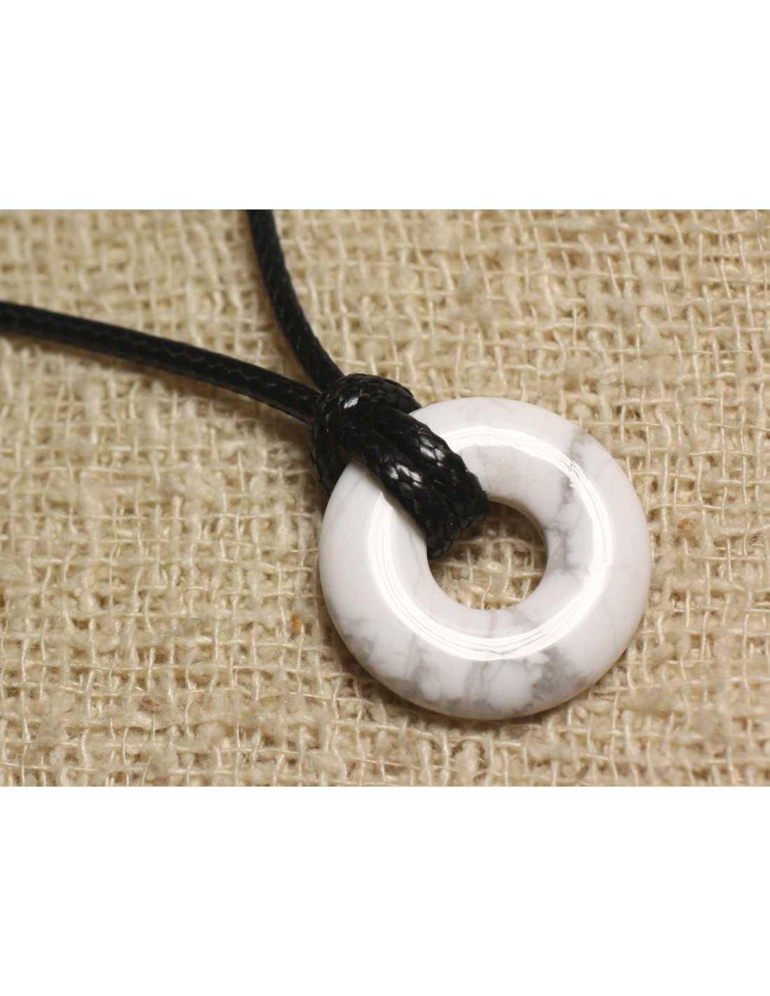 Howlite Stone Anhänger Halskette Natürlicher Halbedelstein Farbe weiß, grau Donutform Abmessungen Durchmesser 20 mm x Breite 6 mm x Dicke 5 mm ungefähr Mittellochgröße 5 mm Gewachste Baumwollschnur Farbe Ihrer Wahl Einstellbare Größe dank eines praktischen und soliden Schiebeverschlusses