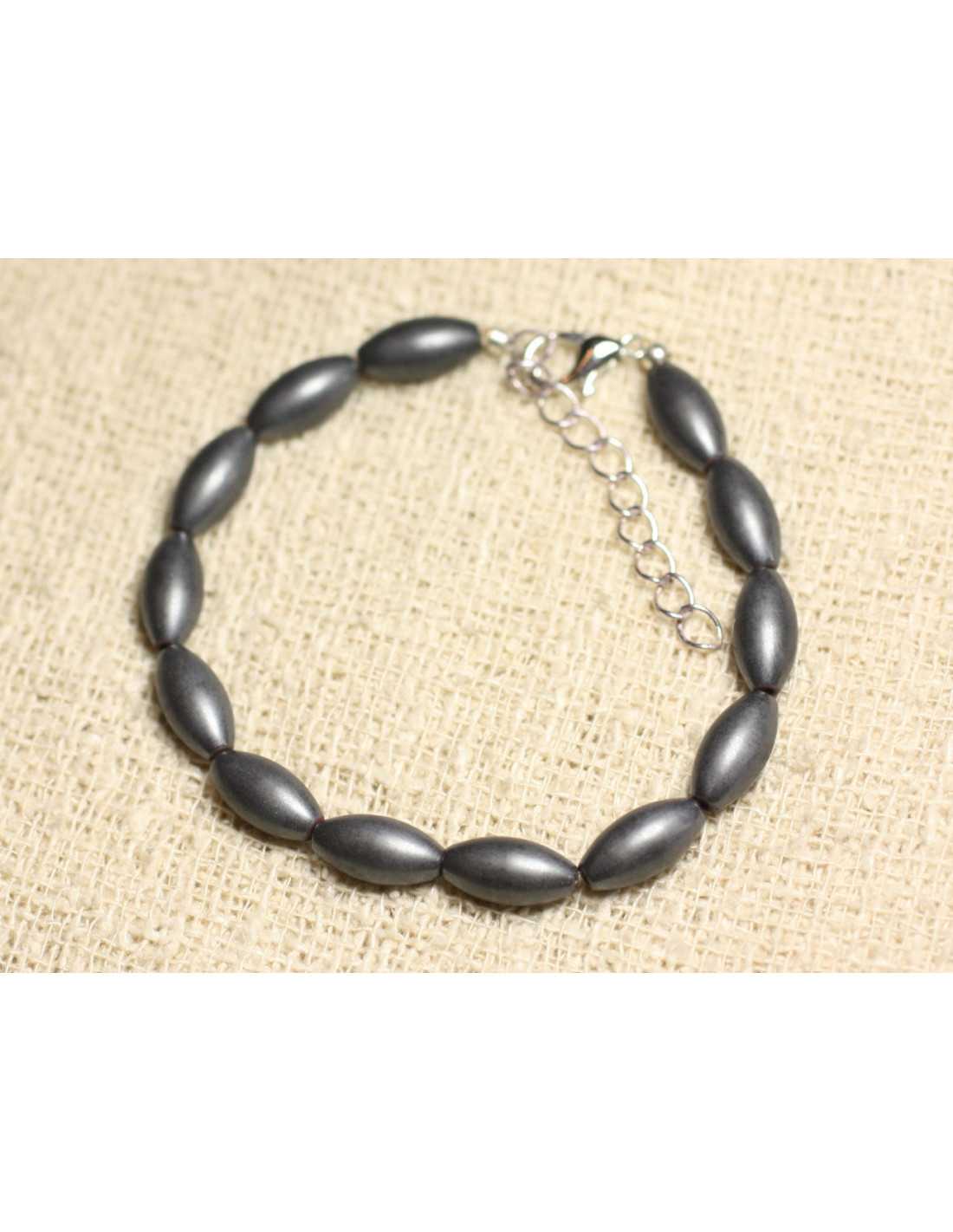 Armband 925 Silber und Hämatit Steinoliven Matt Natürlicher Halbedelstein Farbe grau, matt Olivenperlen Maße 12x5mm ca. Karabinerverschluss und Kette in 925/1000 Silber Länge 17cm + 4cm Silberkette Armband aus starkem und widerstandsfähigem Nylonfaden
