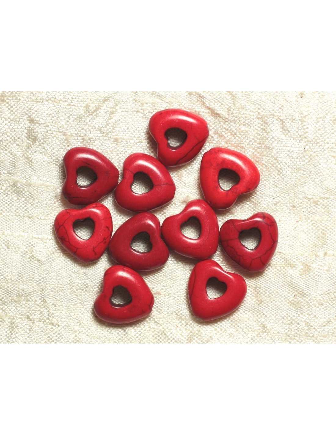 10 Stück - Synthetische Türkisperlen - 15 mm rote Herzen