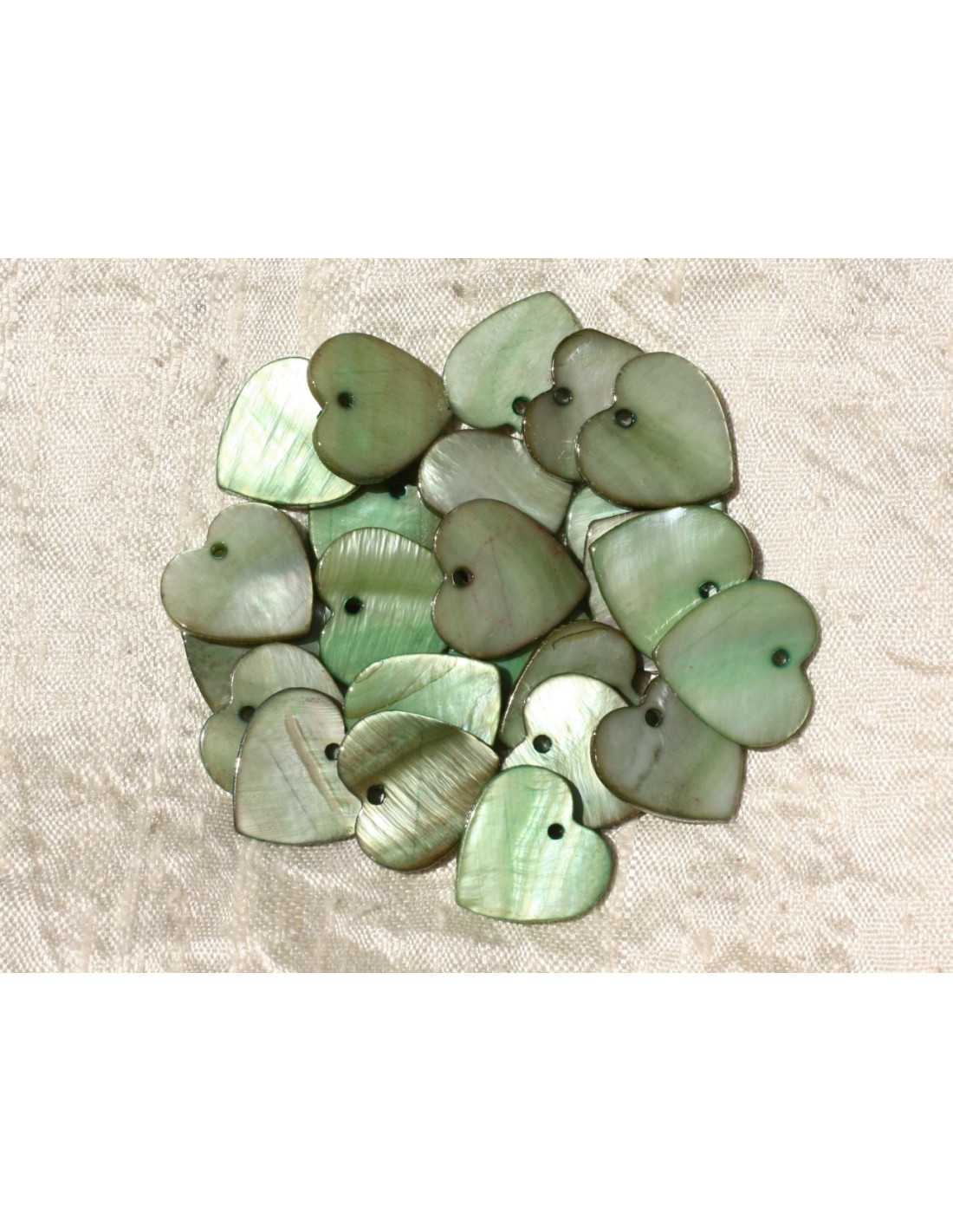 10Stk - Charms Anhänger Perlmutt Grüne Herzen 18mm 4558550018564
