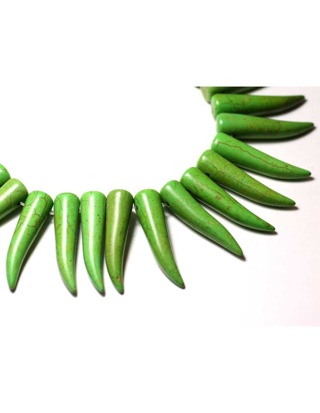 Gewinde 39 cm - Türkis Steinperlen Synthese Chili Pfeffer Pfeffer Horn Zahn 40 mm Türkis Synthese rekonstituiert Farbe Grün Form Chili Horn Zahn Abmessungen Länge 40 mm x Breite ca. 10 mm Bohren in der Spitze Abmessung ca. 1 mm Verkauft mit einem Gewinde von 39 cm Ungefähr 39 Perlen pro Draht
