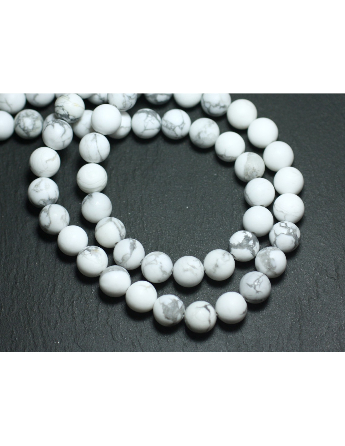 Gewinde 39 cm - Howlite Steinperlen Kugeln 6 mm Natur-Halbedelstein Farbe weiß, grau Form Kugeln Abmessungen ca. 6 mm Bohrabmessung ca. 0,8 mm Verkauft mit 39 cm Draht Ca. 63 Perlen pro Draht