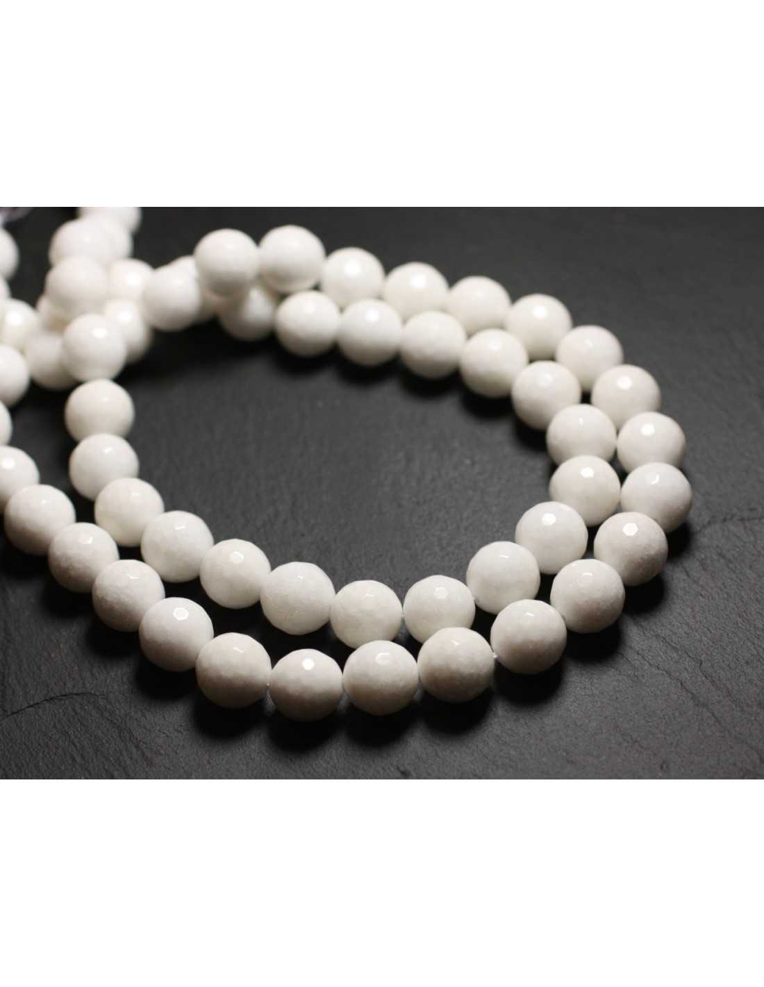 6pc - Steinperlen - Jade Facettierte Kugeln 12mm Opaque White