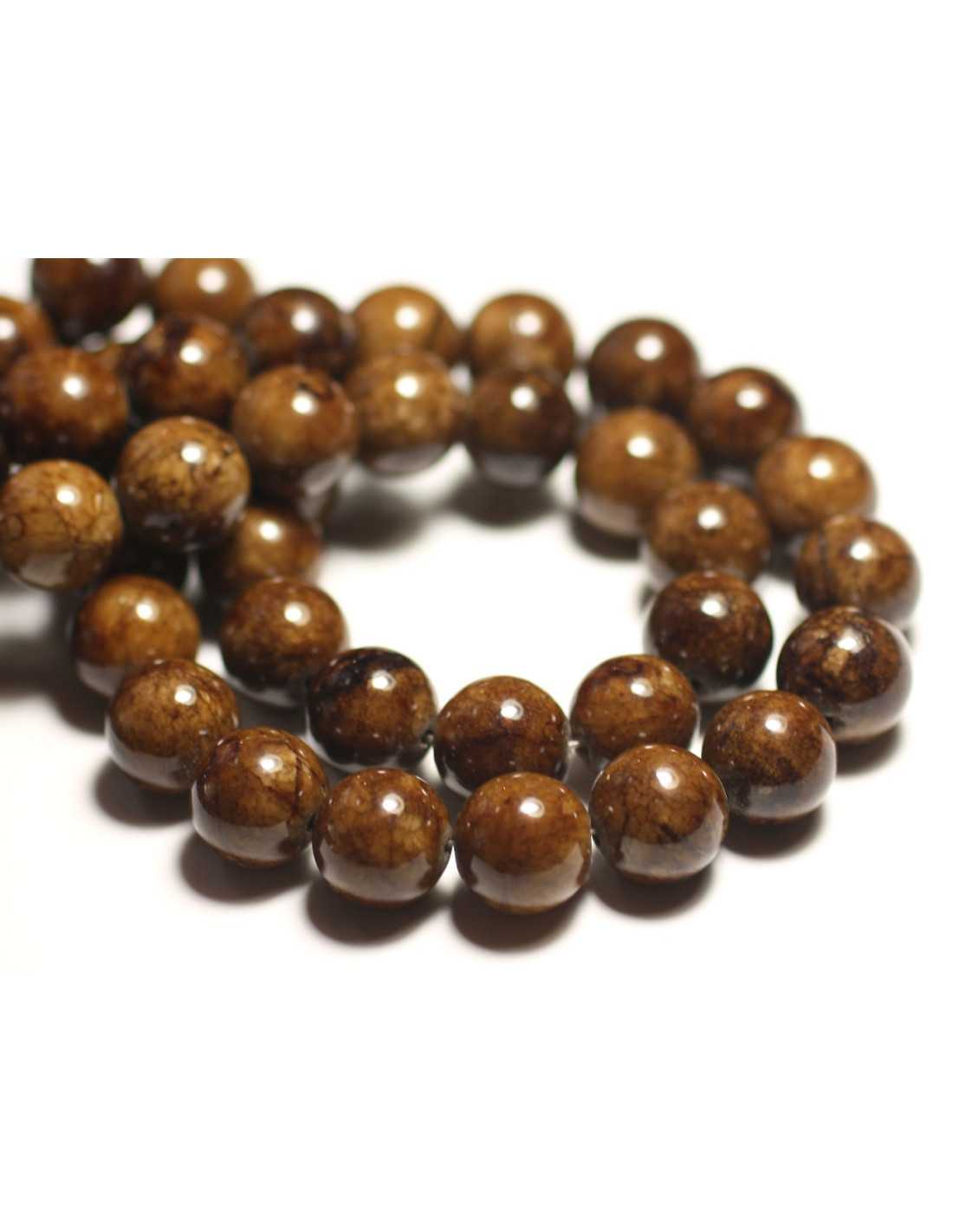 Gewinde ca. 39cm 32pc - Steinperlen - Jadekugeln 12mm Braun Gelb Ocker