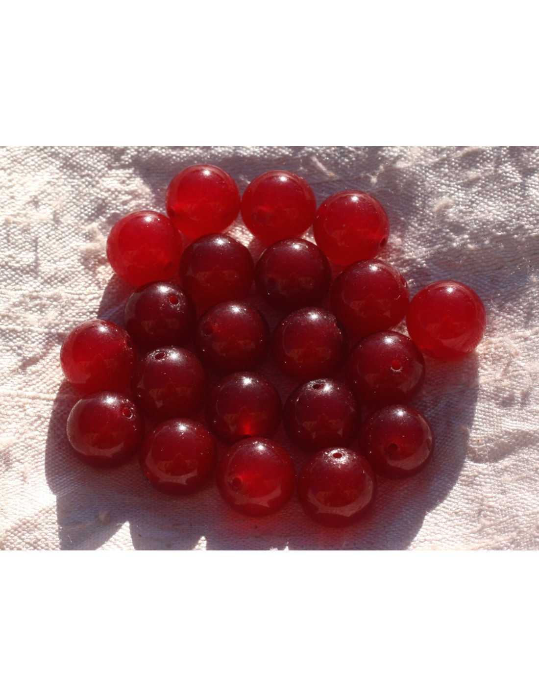 Gewinde 39 cm - Jadesteinperlen Kugeln 12 mm Natur-Halbedelstein getönt Farbe Rot, transparente Kugel, runde Form Abmessungen ca. 12 mm Bohrabmessung ca. 1 mm Verkauft mit 39 cm Draht Ca. 32 Perlen pro Draht
