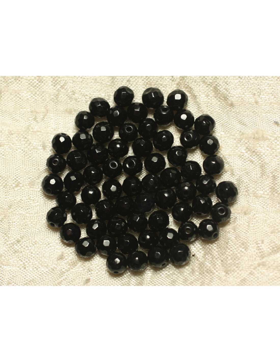Gewinde 39 cm - Jadesteinperlen Facettierte Kugeln 6 mm Naturgetönter Halbedelstein Farbe Schwarz Form Facettierte Kugeln Abmessungen ca. 6 mm Bohrabmessung ca. 1 mm Verkauft mit 39 cm Draht Ca. 64 Perlen pro Draht
