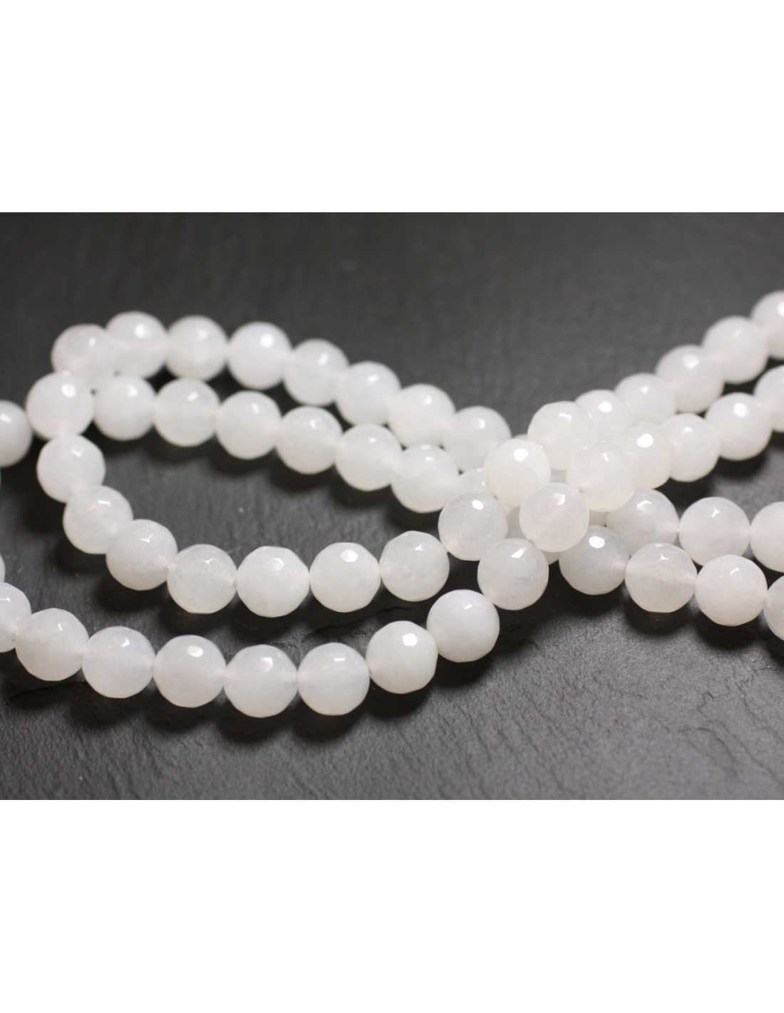 Gewinde 39 cm - Weiße Jadesteinperlen Facettierte Kugeln 6 mm Natur getönter Halbedelstein Farbe Weiße, transparente Form Facettierte Kugeln Abmessungen ca. 6 mm Bohrabmessung ca. 0,8 mm Verkauft mit einem Gewinde von 39 cm Ca. 63 Perlen pro Draht