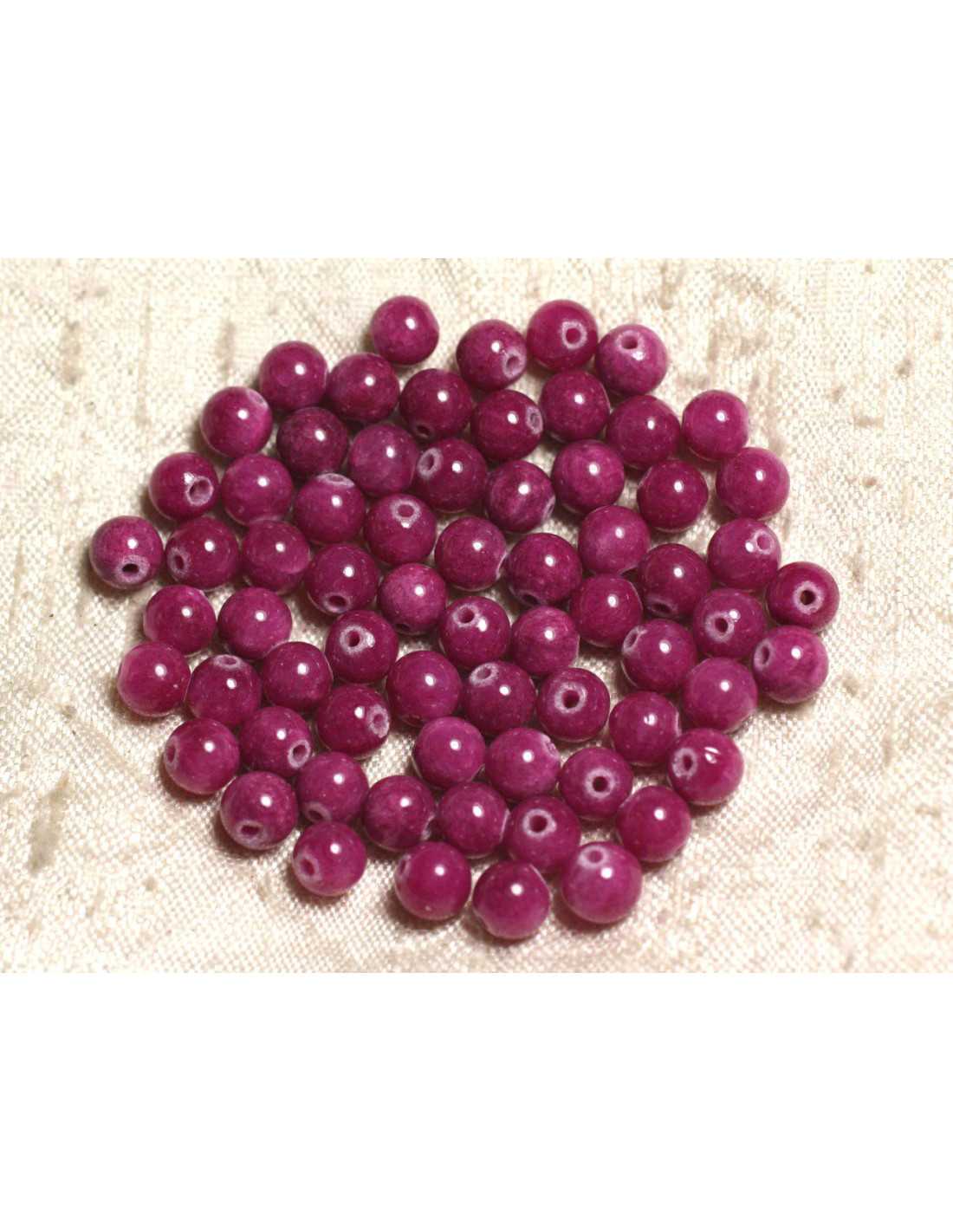Homemade20pc - Perles de Pierre - Jade Boules 6mm Rose Fuchsia Rubis