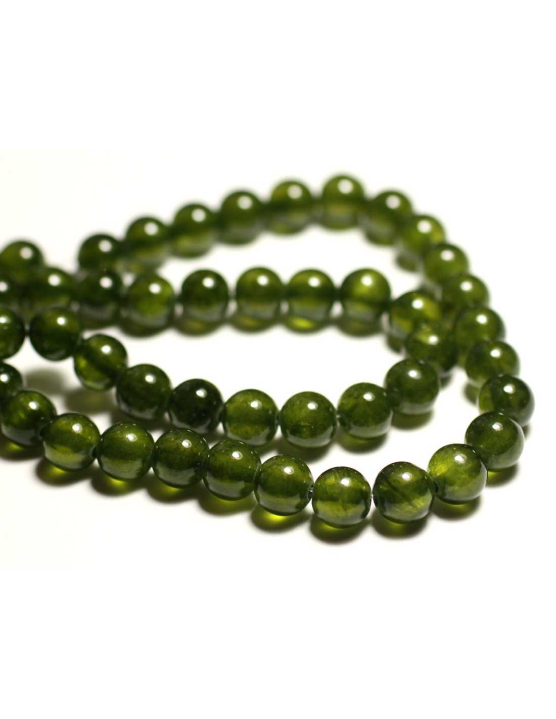 Gewinde 39 cm - Jadesteinperlen Natürlicher Halbedelstein Farbe Olivgrün Khaki, transparent Kugelform, rund Abmessung ca. 8 mm Bohrabmessung ca. 1 mm Verkauft mit 39 cm Draht Ca. 48 Perlen pro Draht