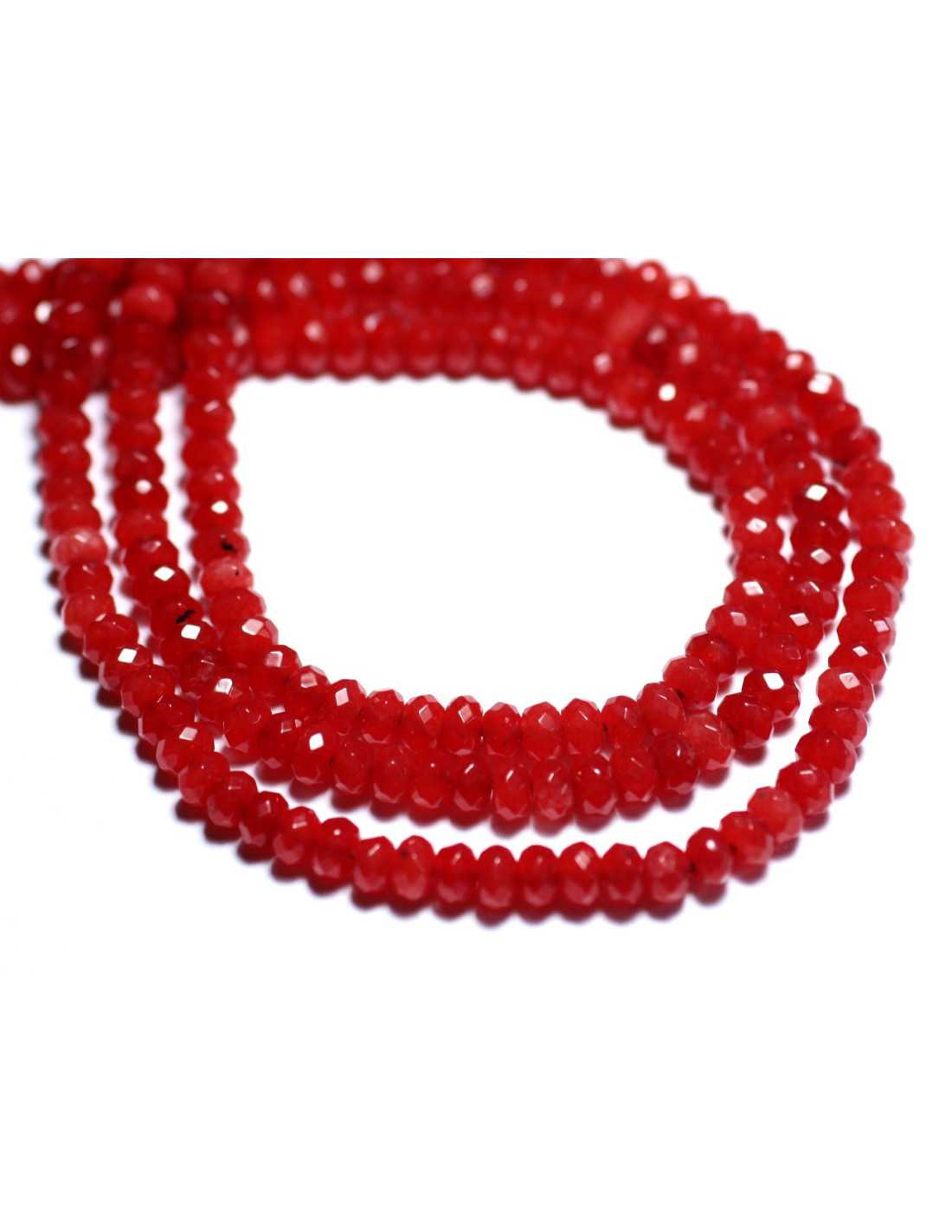 30pc - Steinperlen - Jade facettierte Rondellen 4x2mm Leuchtendes Orange Rot