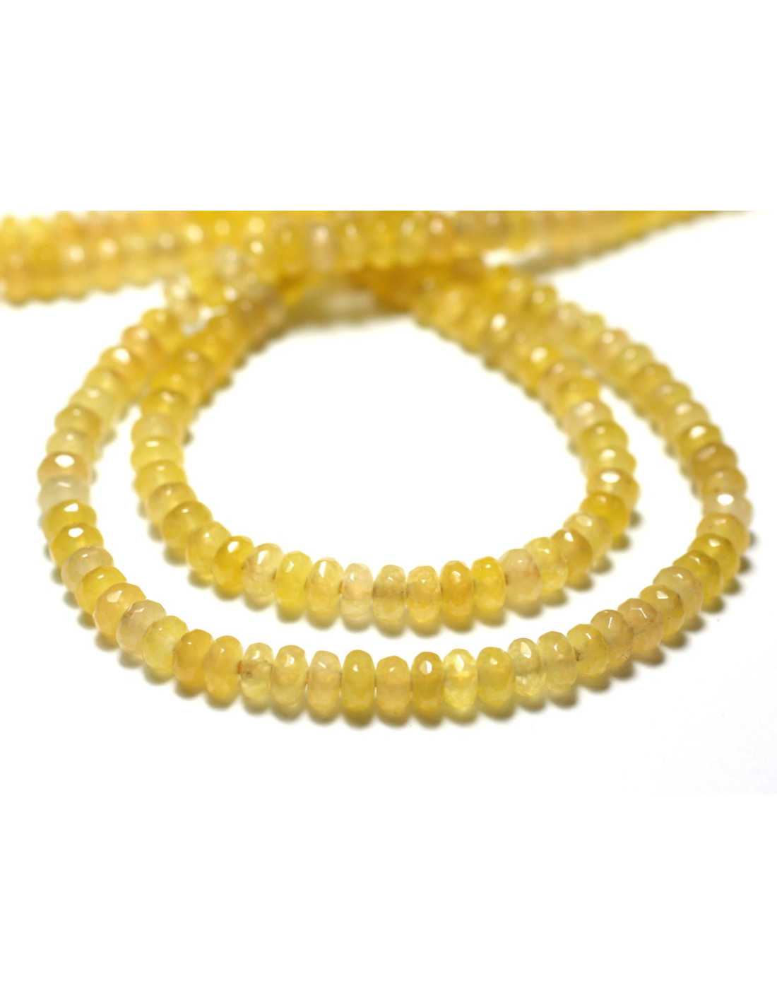 Fil 39cm 162pc env - Perles de Pierre - Jade Rondelles Facettées 4x2mm Jaune clair pastel