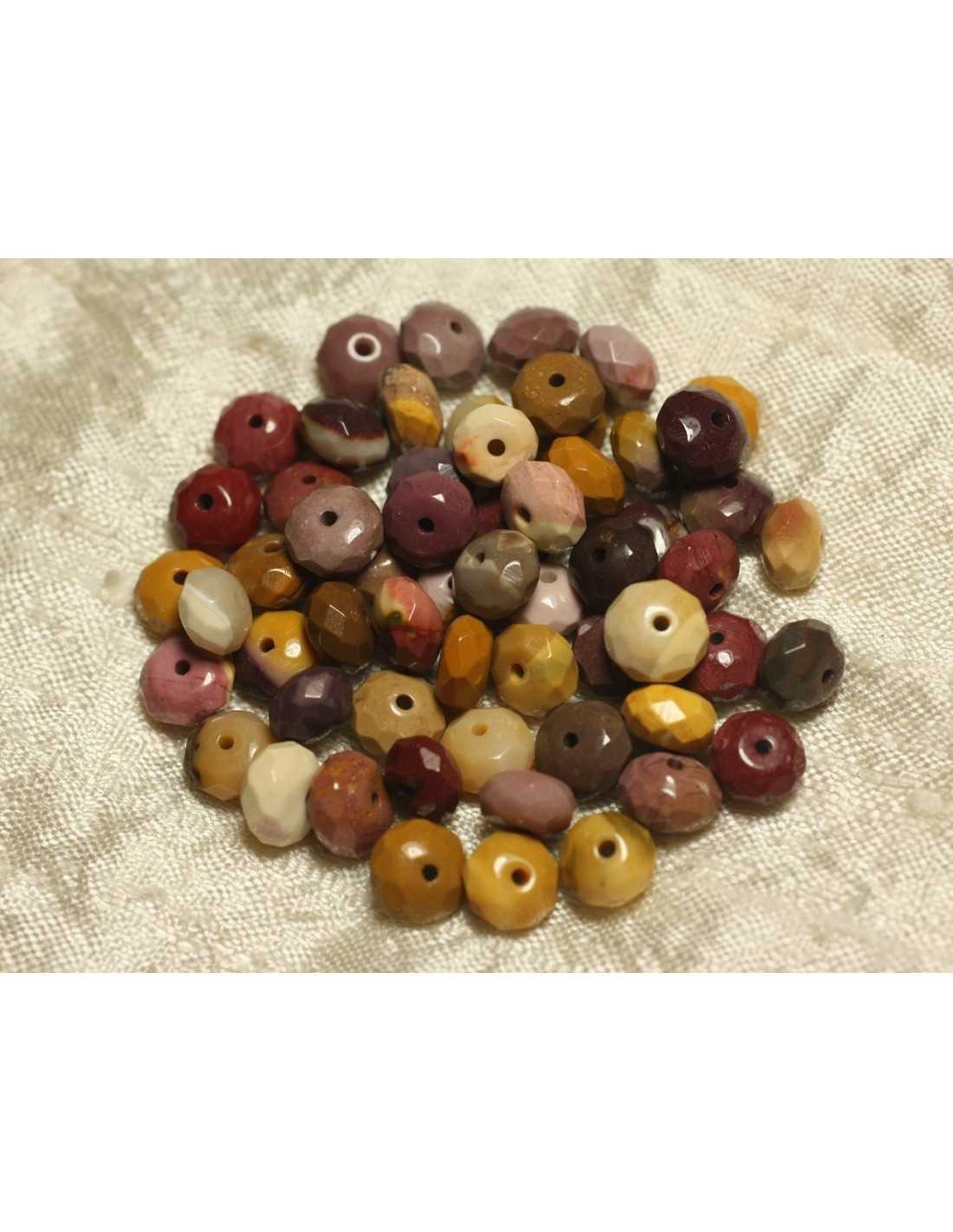 5 Stück - Steinperlen - Mokaïte Jasper Facettierte Rondellen 8x5mm