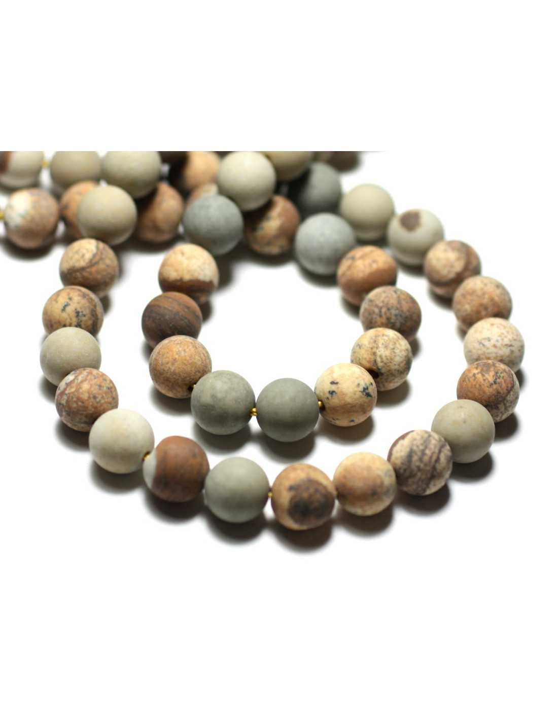 Gewinde 39 cm - Steinperlen Jaspis Beige Landschaft Halbedelstein Naturfarbe Beige Gelb Grau Matt Sanded Matted Shape Formkugeln, rund Abmessungen ca. 8 mm Bohrabmessung ca. 1 mm ca. Verkauft mit einem Gewinde von 39 cm Ca. 45 Perlen pro Draht