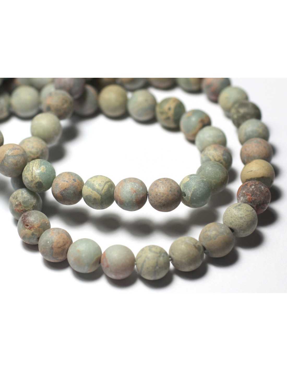 Fil 39cm 50pc env - Perles de Pierre - Jaspe Aqua Terra Sedimentaire Boules 8mm Mat Sablé Givré