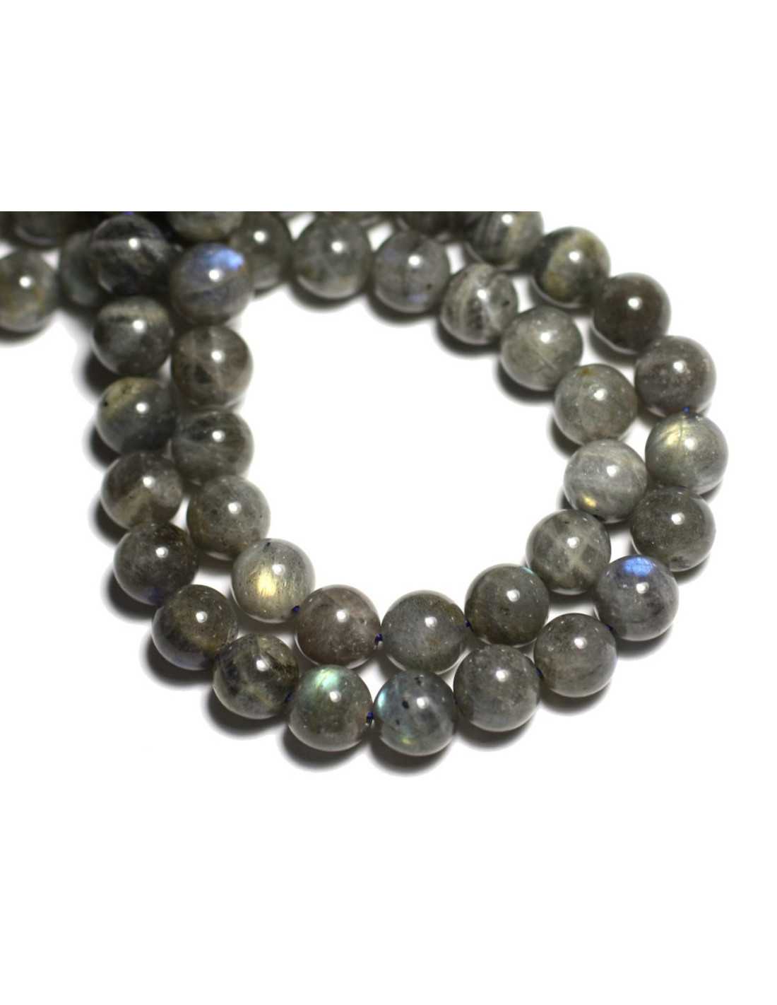 Gewinde 39 cm - Labradorit-Steinperlen Natürlicher Halbedelstein Graue Farbe mit blauen, grünen, mehrfarbigen Reflexen Kugelform, rund Abmessung ca. 4 mm Bohrabmessung ca. 0,8 mm Verkauft mit 39 cm Draht Ca. 86 Perlen pro Draht