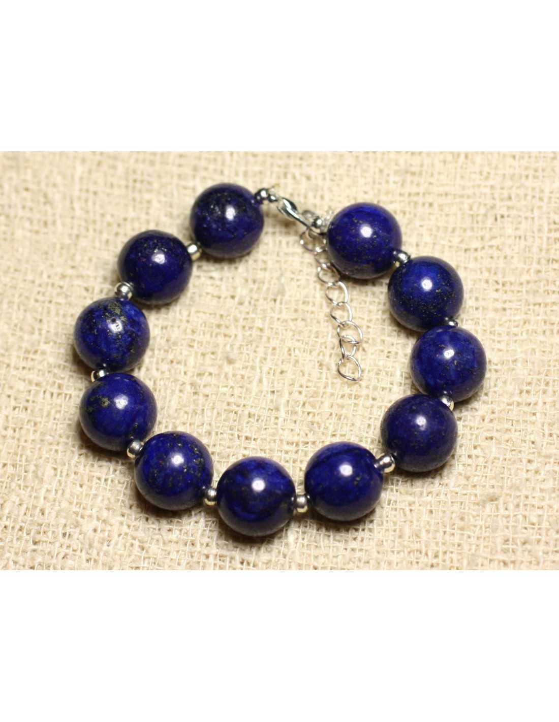 Armband Silber 925 und Stein - Lapislazuli Kugeln 12mm