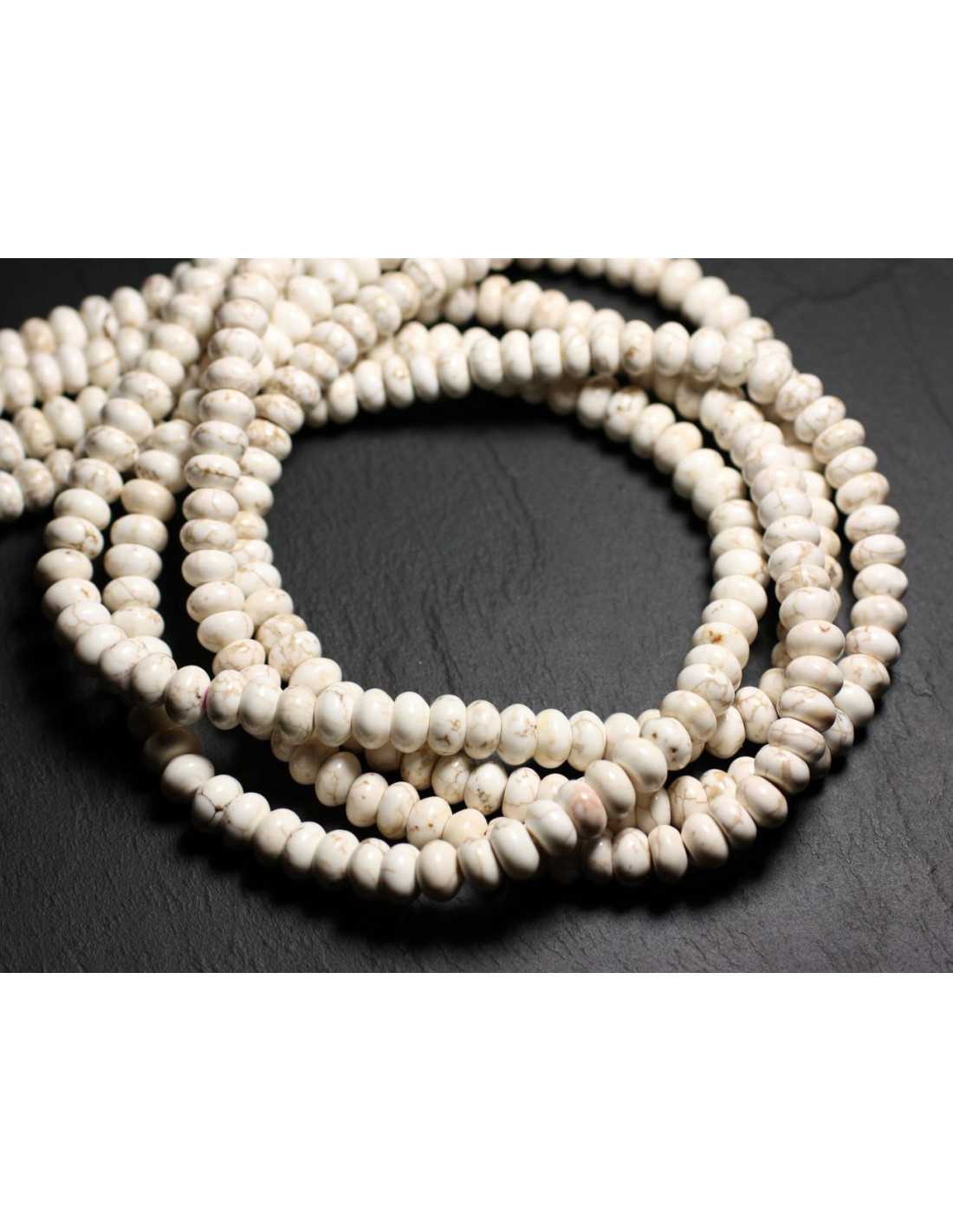 Gewinde 39 cm - Magnesit-Steinperlen Natürlicher Halbedelstein Farbe Cremeweißes Elfenbein, beige Form Rondellen Abmessungen Durchmesser 8 mm x Dicke ca. 5 mm Bohrgröße ca. 1 mm Verkauft mit einem Gewinde von 39 cm Ungefähr 76 Perlen pro Draht