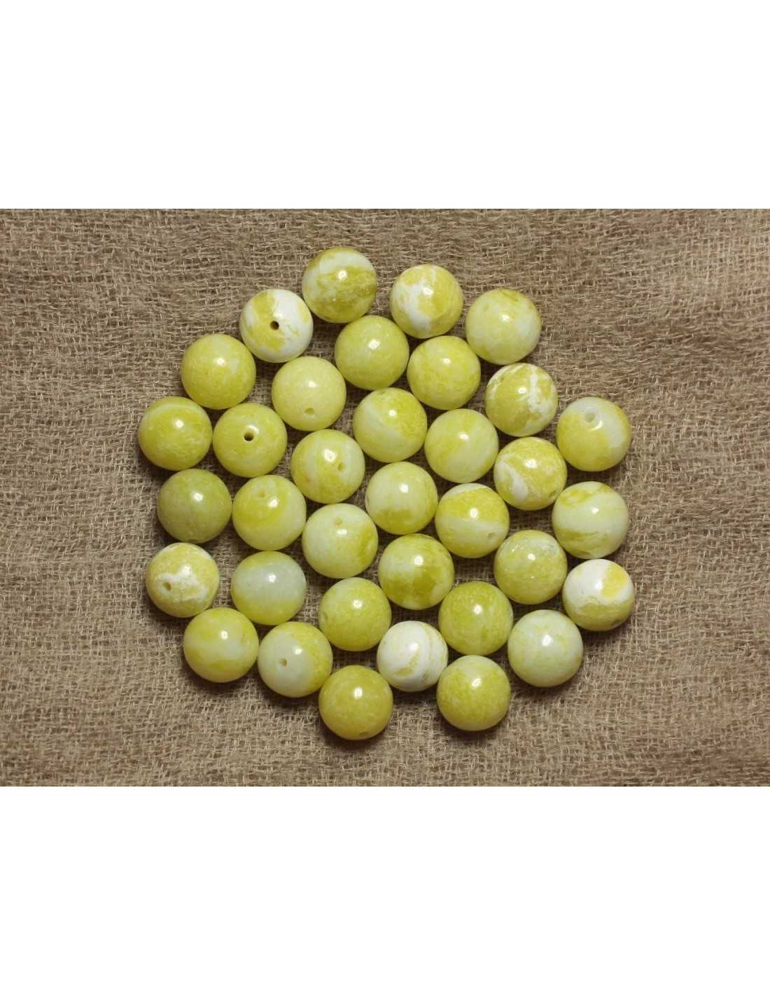10Stk - Steinperlen - Weiße und zitronengelbe Jadekugeln 8mm - 4558550034090