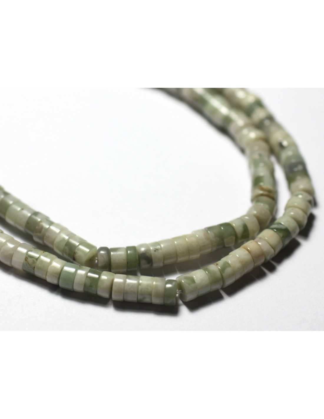 20 Stück - Steinperlen - Friedensjadegrün Weiß Heishi Rondelles 4x2mm - 7427039730785
