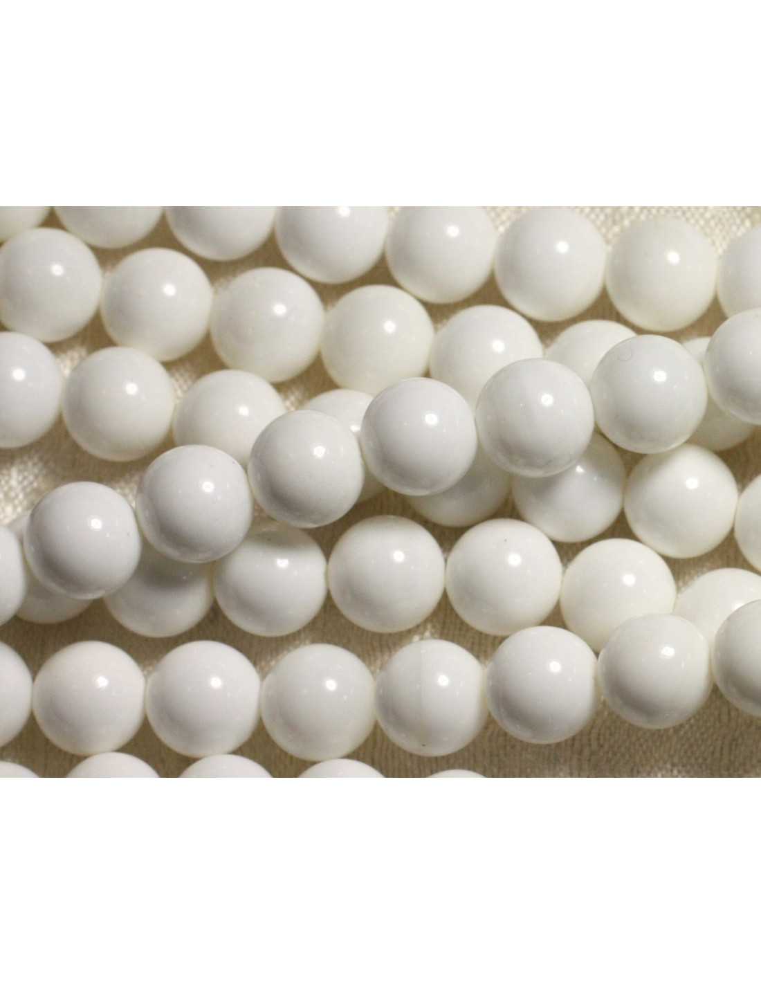 Gewinde 39 cm Opake weiße Perlmuttperlen 6 mm Kugeln Natürliche weiße Perlmuttfarbe Opake weiße Form Kugeln Kugeln Abmessungen ca. 6 mm Bohrabmessungen ca. 0,8 mm Verkauft mit einem Gewinde von 39 cm Ungefähr 63 Perlen pro Faden