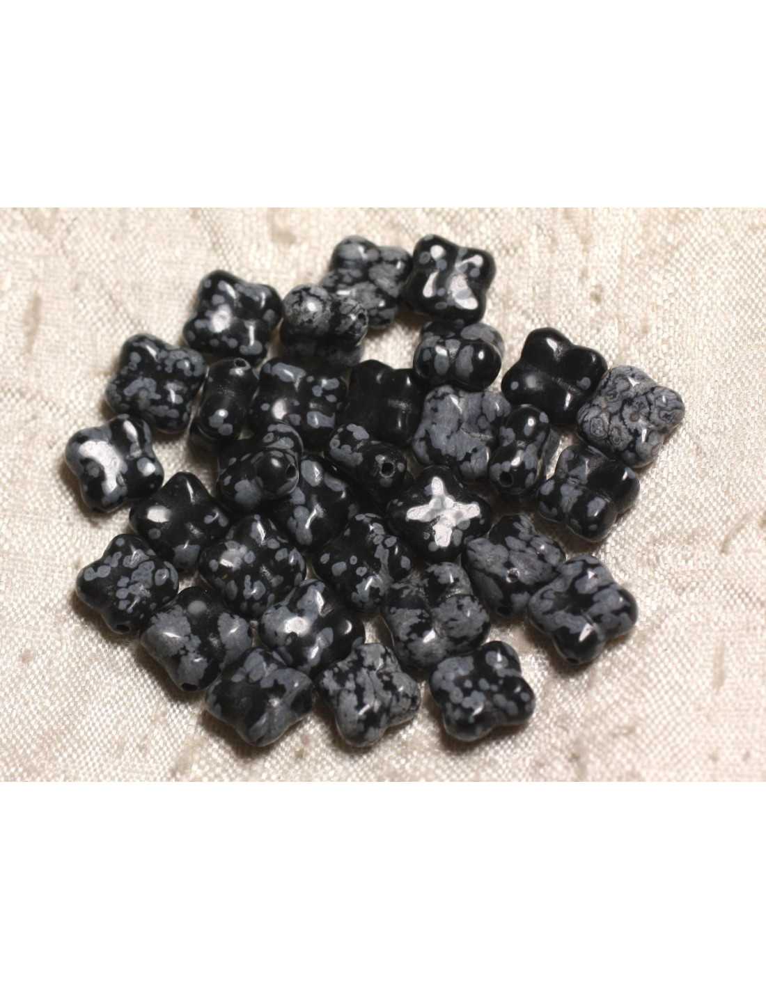 2Stk - Steinperlen - Obsidian Flocon Kleeblume 9-10mm 4558550003805