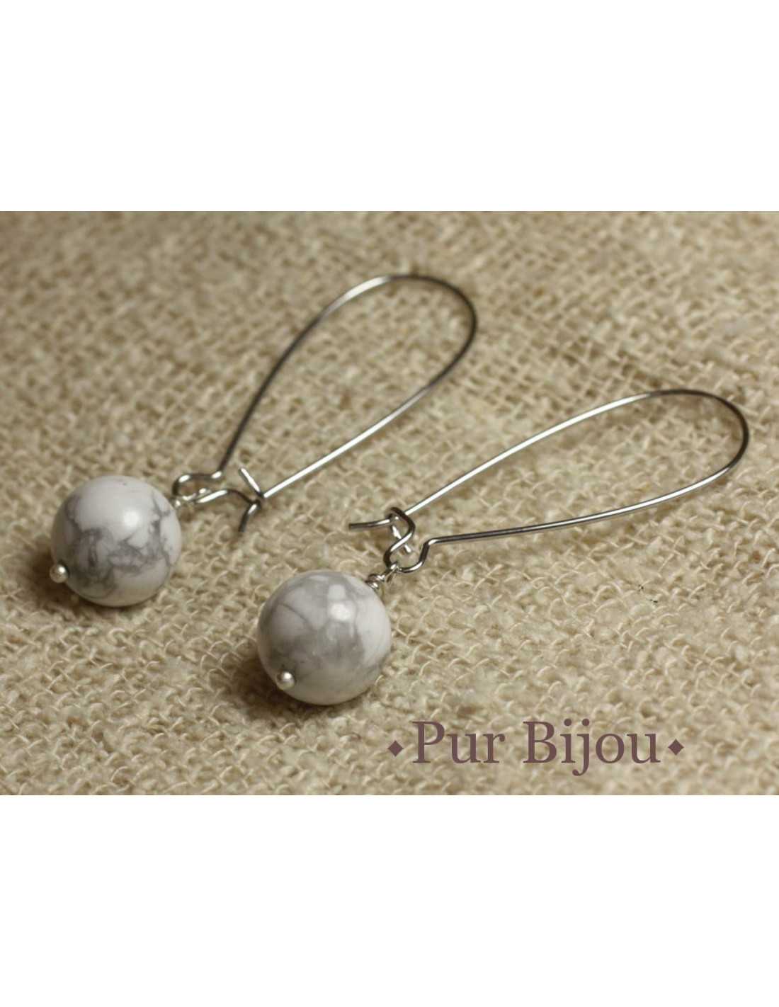 Halbedelsteinohrringe - Howlite 10mm Schlaufen aus Howlite Perlen an langen Silberhaken (Qualitätsmetall) Zusammensetzung: Howlite Halbedelsteinperlen, 10mm Kugeln, Farbe Weiß und Grau geäderte Silberhaken ohne Blei und Nickelfrei 33 x 8 mm Länge der Schnallen: ca. 53 mm Viele Steinperlen und Farben erhältlich Realisierung Ihres Schmucks auf einfache Anfrage und ohne zusätzliche Kosten bei Fragen, kontaktieren Sie mich bitte über ALM oder unter purbijou1@gmail.com, I. wird so schnell wie möglich auf Ihre Anfrage antworten