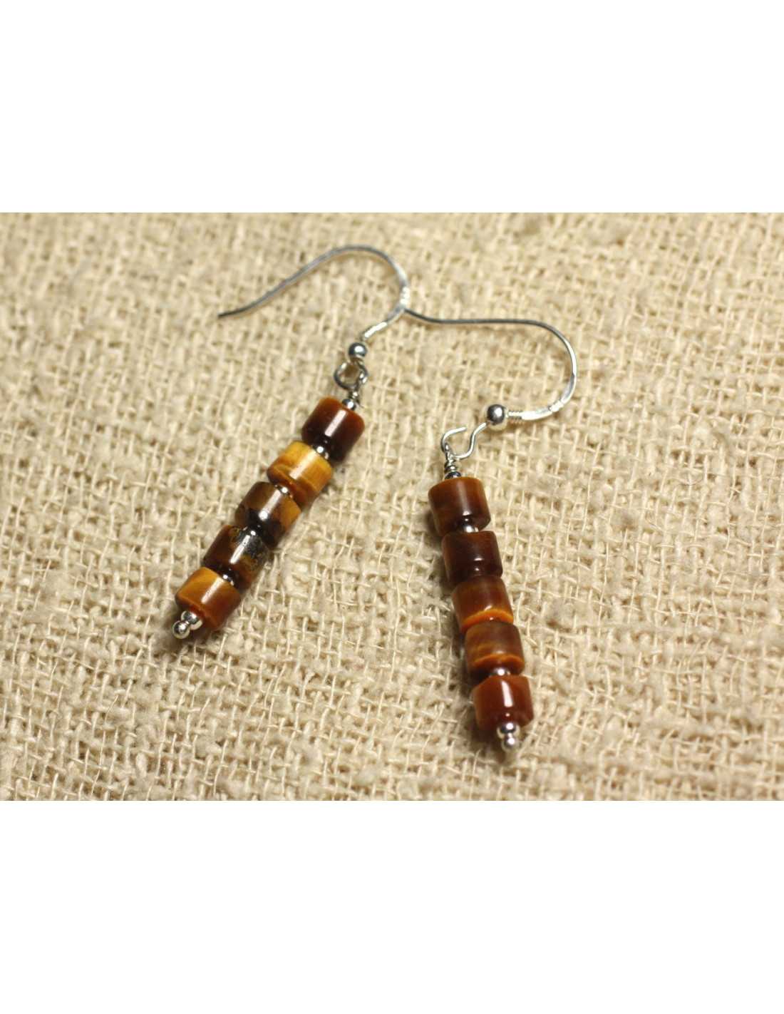 Ohrringe Silber 925 und Halbedelstein Tiger Eye Rondelles 5x4mm Natürlicher Halbedelstein Farbe braun, bronze, gold, schwarz mit Reflexionen Perlen Rondellen Abmessungen Durchmesser 5mm x Dicke 3-4mm ca. Silberperlen 925/1000 runde 2mm Haken 925/1000 Silber Schnallenlänge ca. 32mm