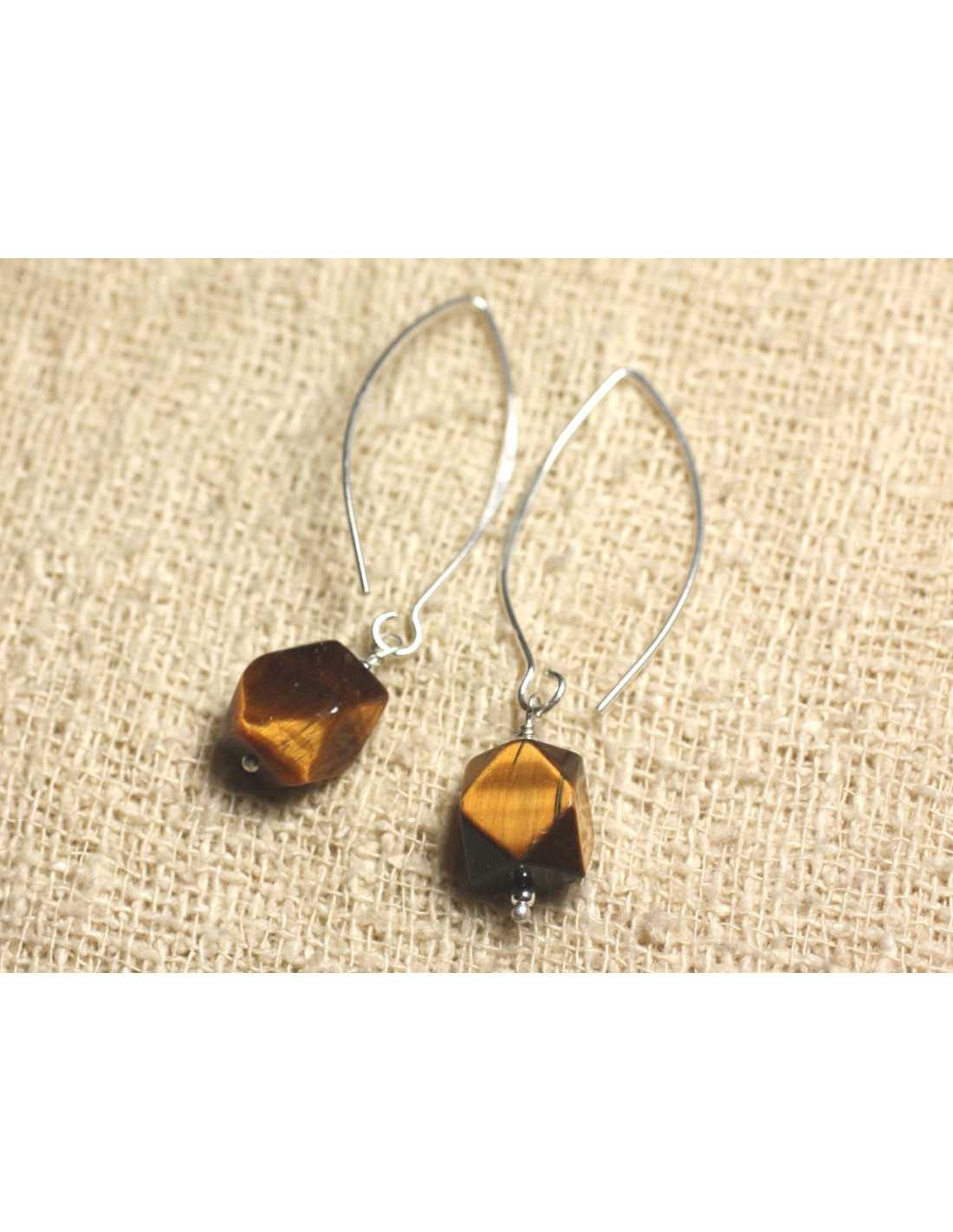 925 Silber Ohrringe 40mm Haken - Tiger Eye Facettierte Nuggets 12x9mm